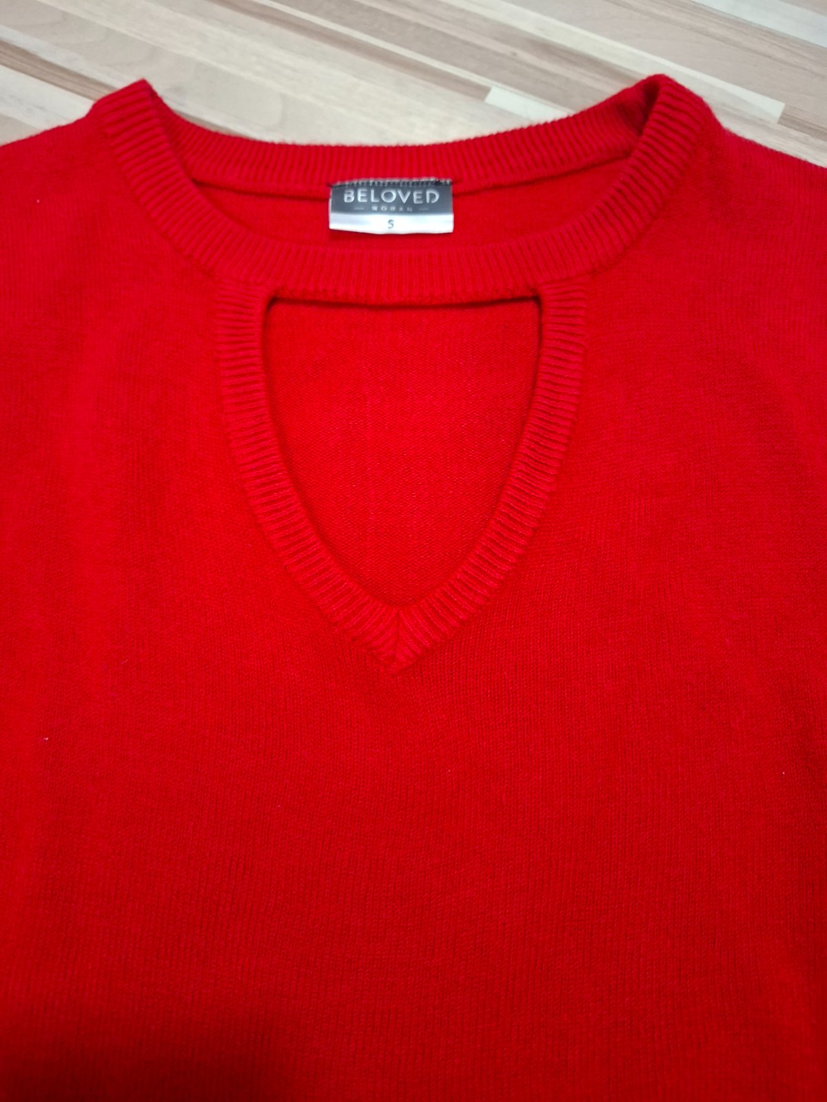 predam krasny elegantny sveter cervenej faryb a s kamienkami cislo S mozno aj M cena 4 euro