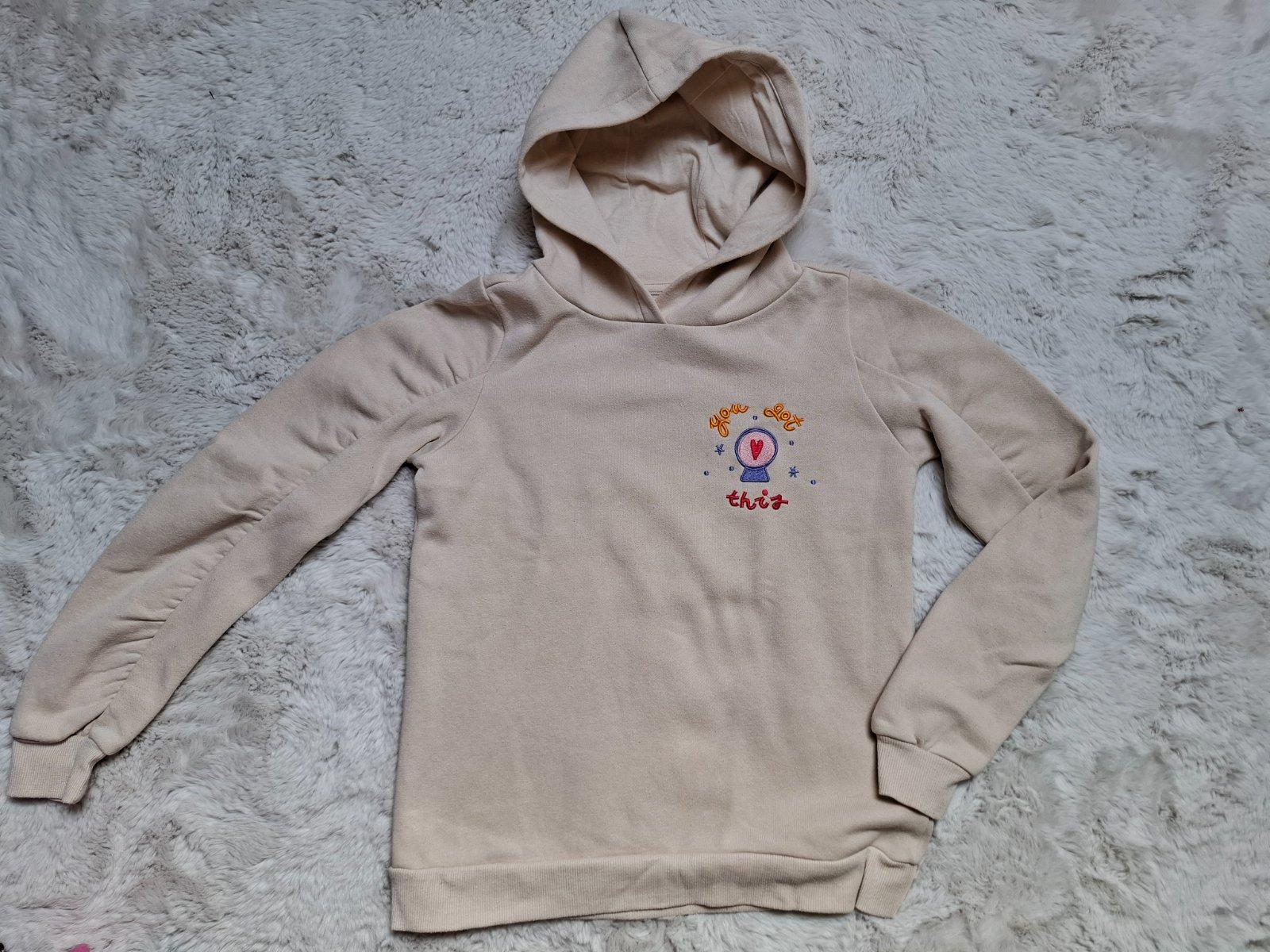 Nosena mikina, zn. Reserved, veľkosť 146, jemne zmolky, rukávy su nazberane, cena 3,50 Eur