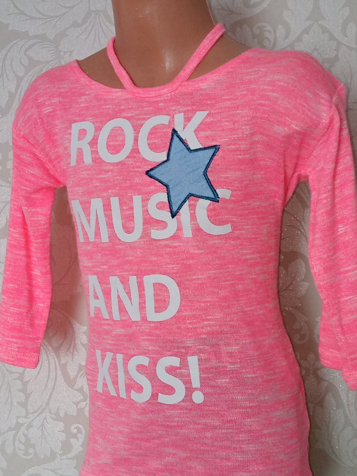 Dievčenský sveter s odhalenými rukávmi.