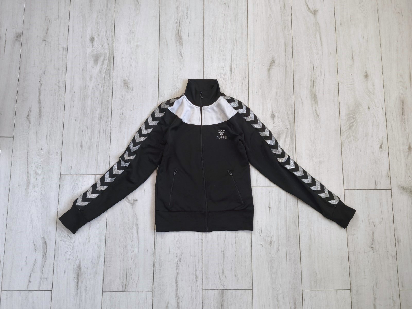 Ponúkam túto dievčenskú (prípadne dámsku) športovú mikinu zn. Hummel, v čierno-bielom prevedení so strieborným nápisom a vzorom na rukávoch. Je v perfektnom stave, veľkosť dievčenská 176, prípadne dámska XS.