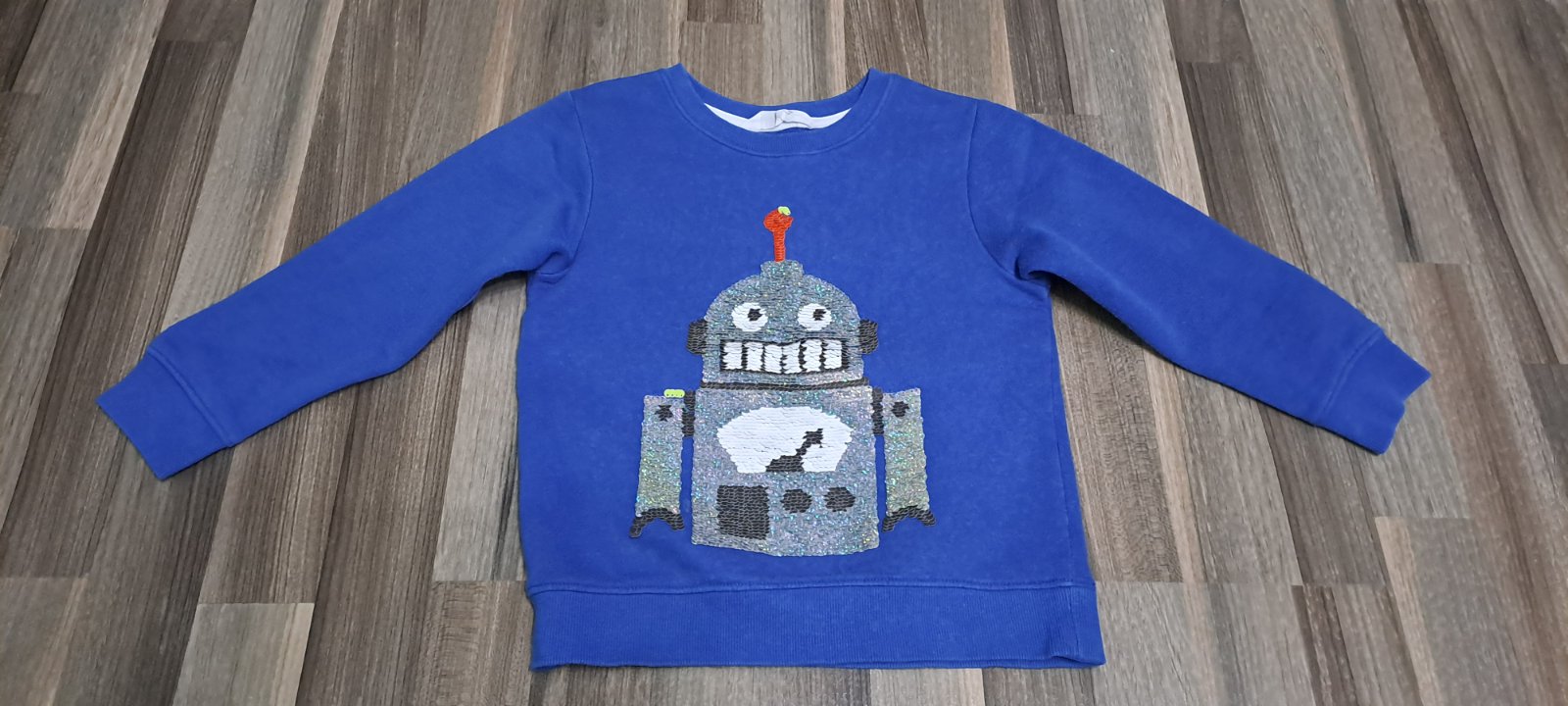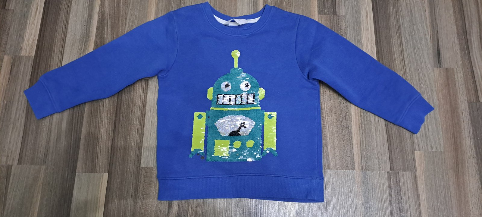 Mikina modrá ROBOT s flitrami, zn. H&M,veľ.110-116