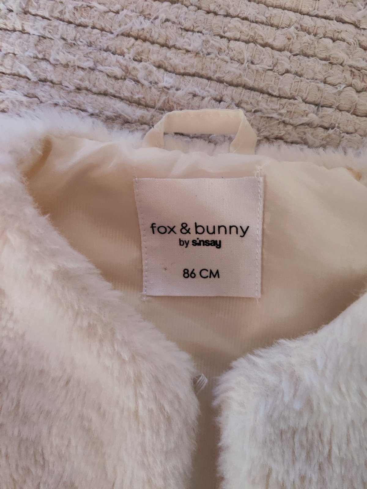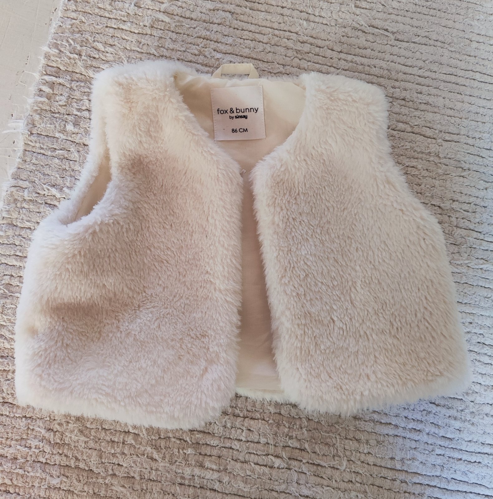 Veľmi dobrý stav! Dievčenská biela huňatá vesta, zapínanie na zips, dve bočné vrecká, materiál 100%polyester. ROZMERY: dĺžka meraná vzadu:38cm,pod pazuchami meraná šírka:2x30cm,od pazuchy dĺžka do...