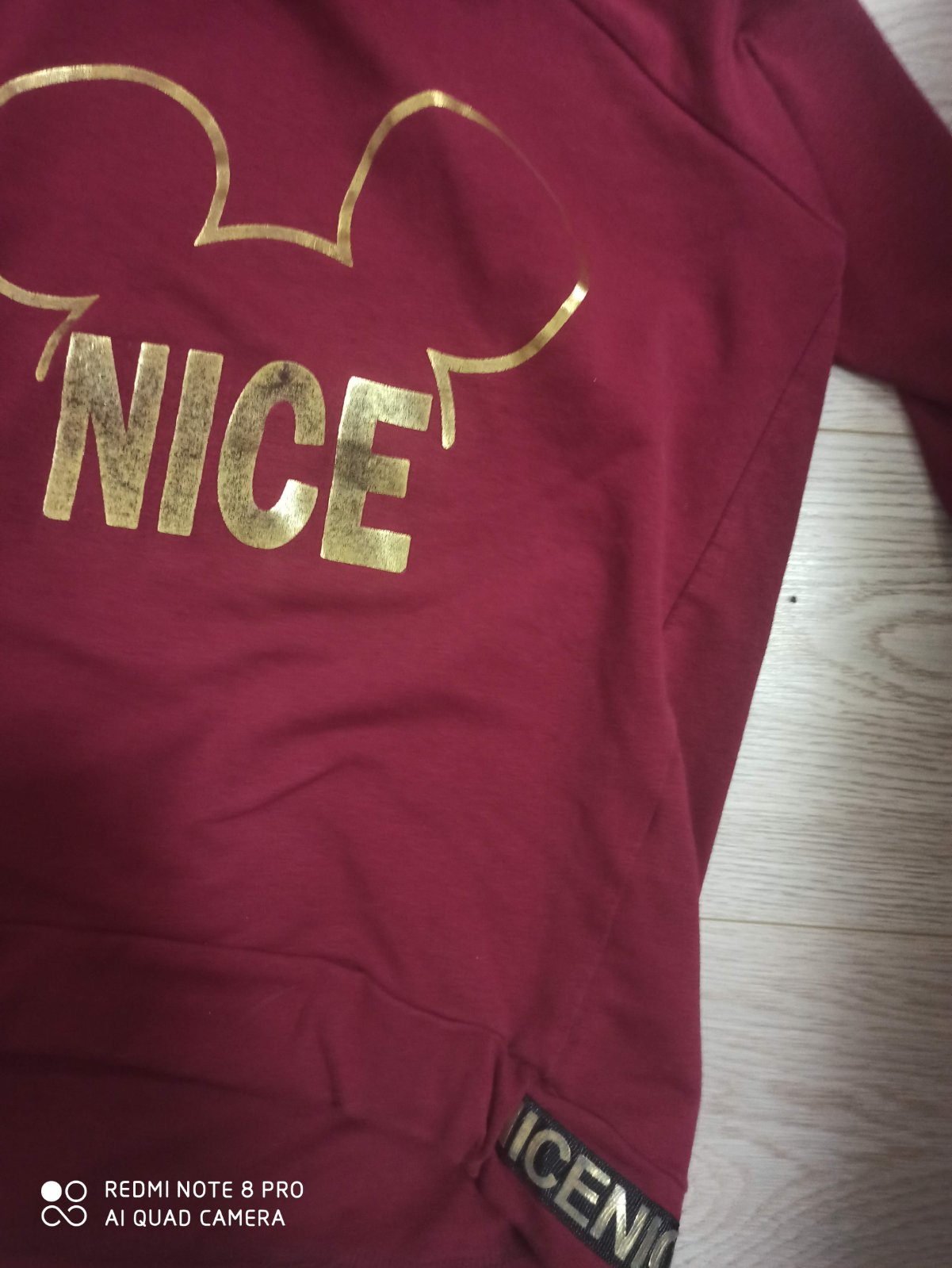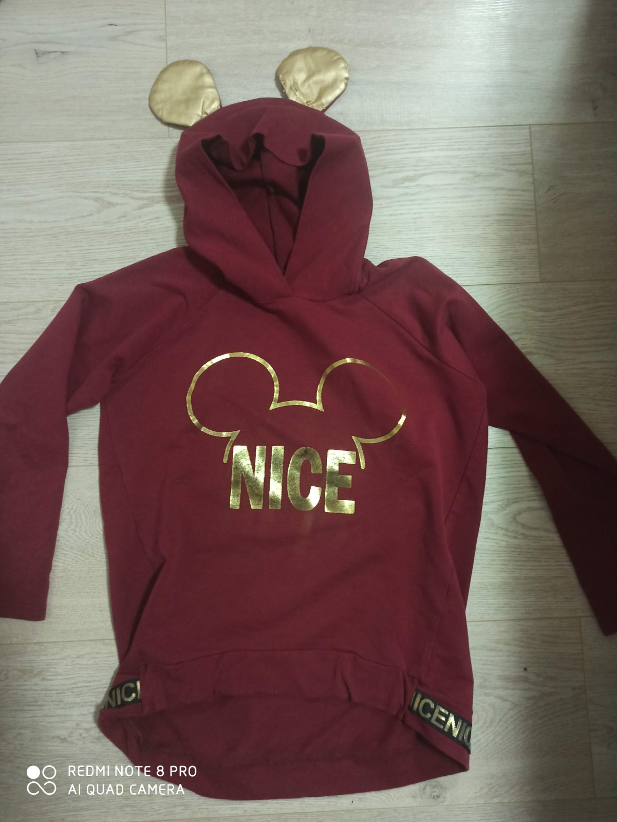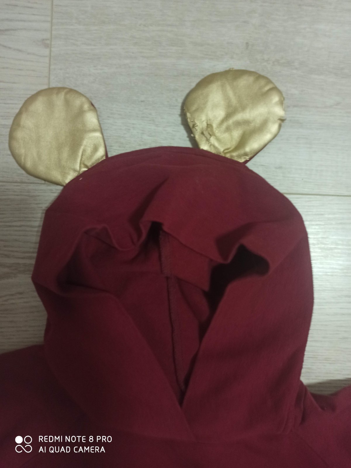 Krasna Mickey mikinka, na usku trosku odlupnuta zlata farba.