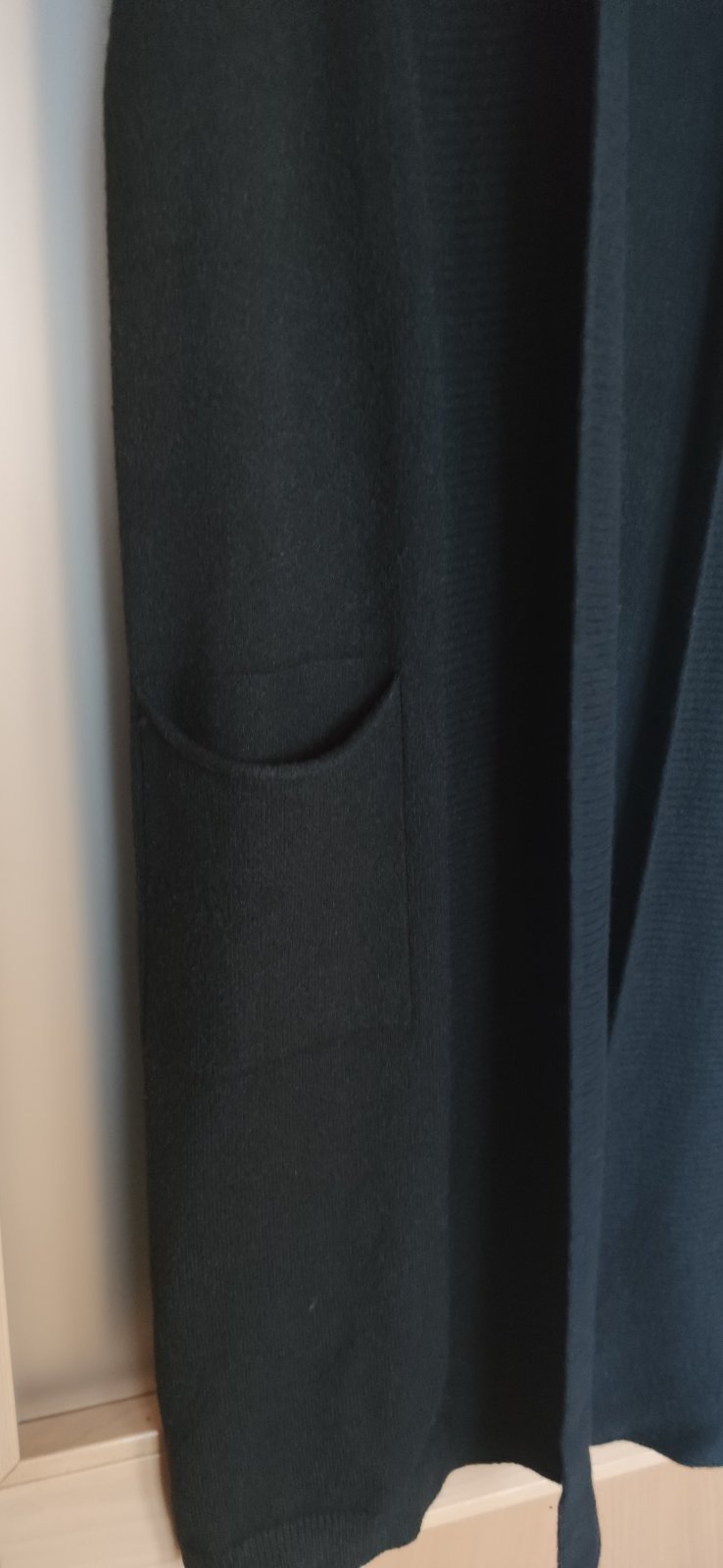 Predám kvalitnú pletenú vestu. Má dve predné vrecká. Farba čierna. Oblečená iba raz. Dĺžka midi. Veľkosť XL -XXL.