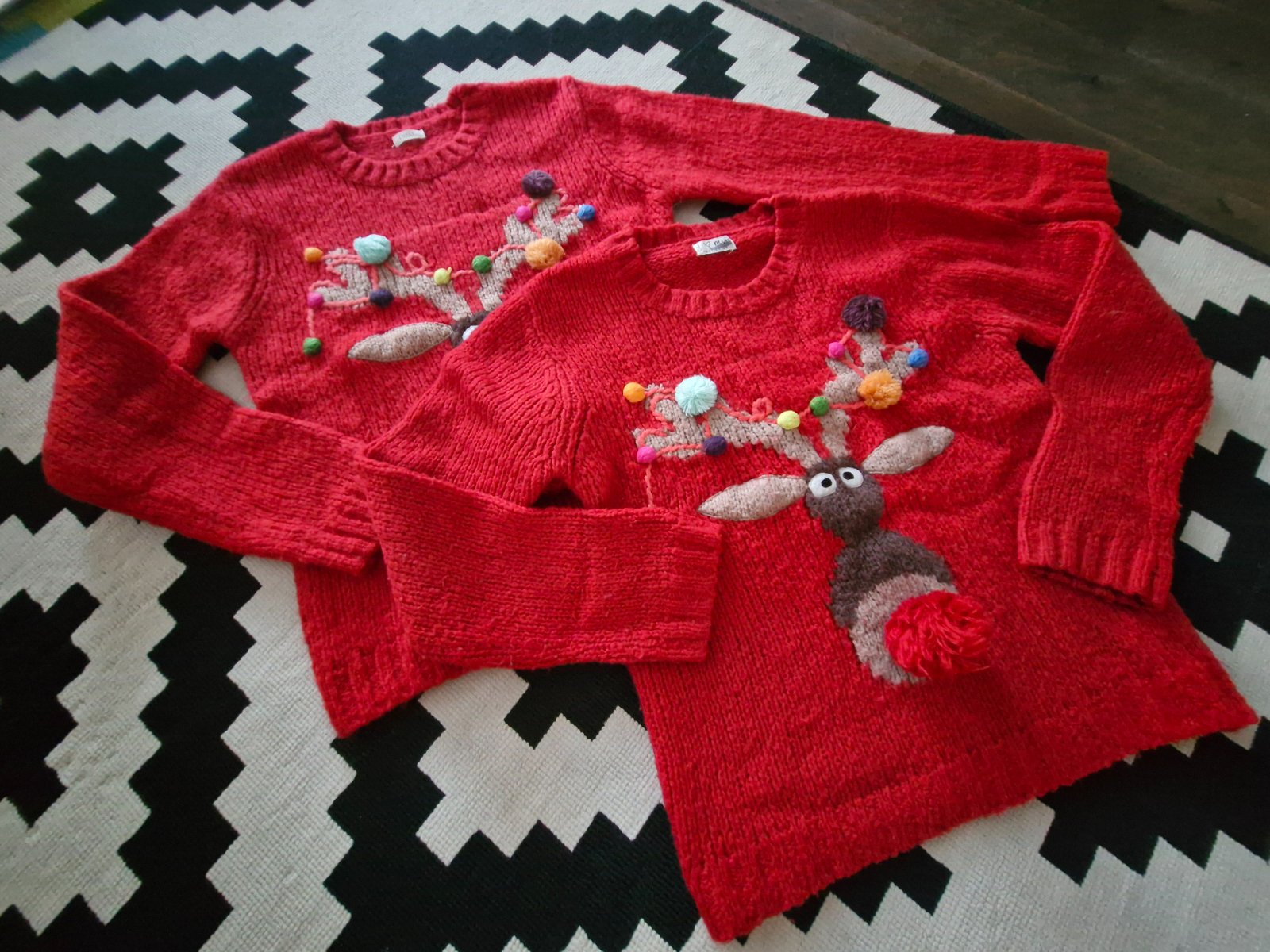 Nadherne kvalitne pulovriky zn.Next s aplikaciou vianocneho soba s brmbolcovym nosom vo v.146 a 152,cena LEN 9eur/ks,pri odbere spolu zlava 2eur vo vyske obyc posty.