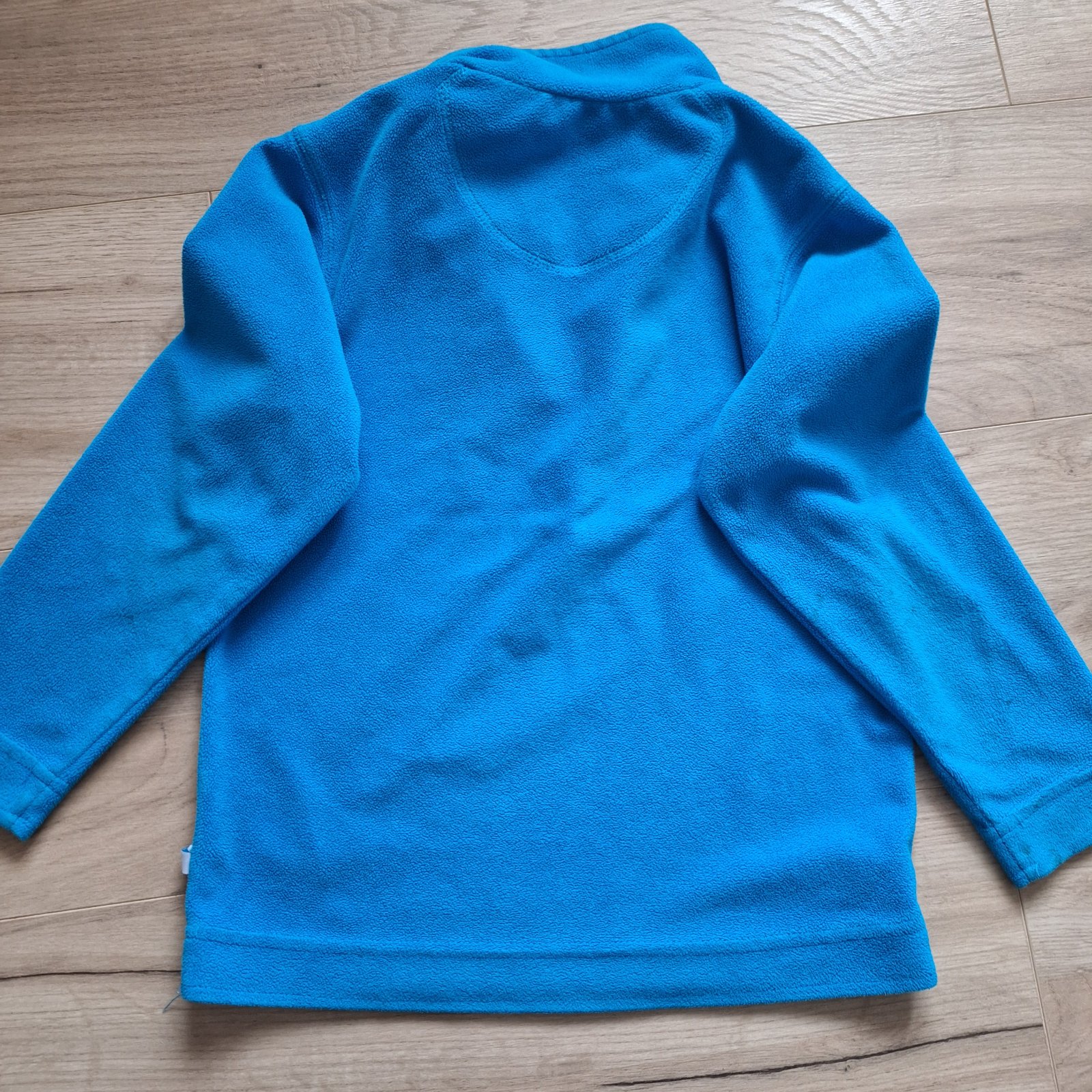 Teplá flísová mikina, má fľaky na rukávoch a jeden malý aj pri zipse.