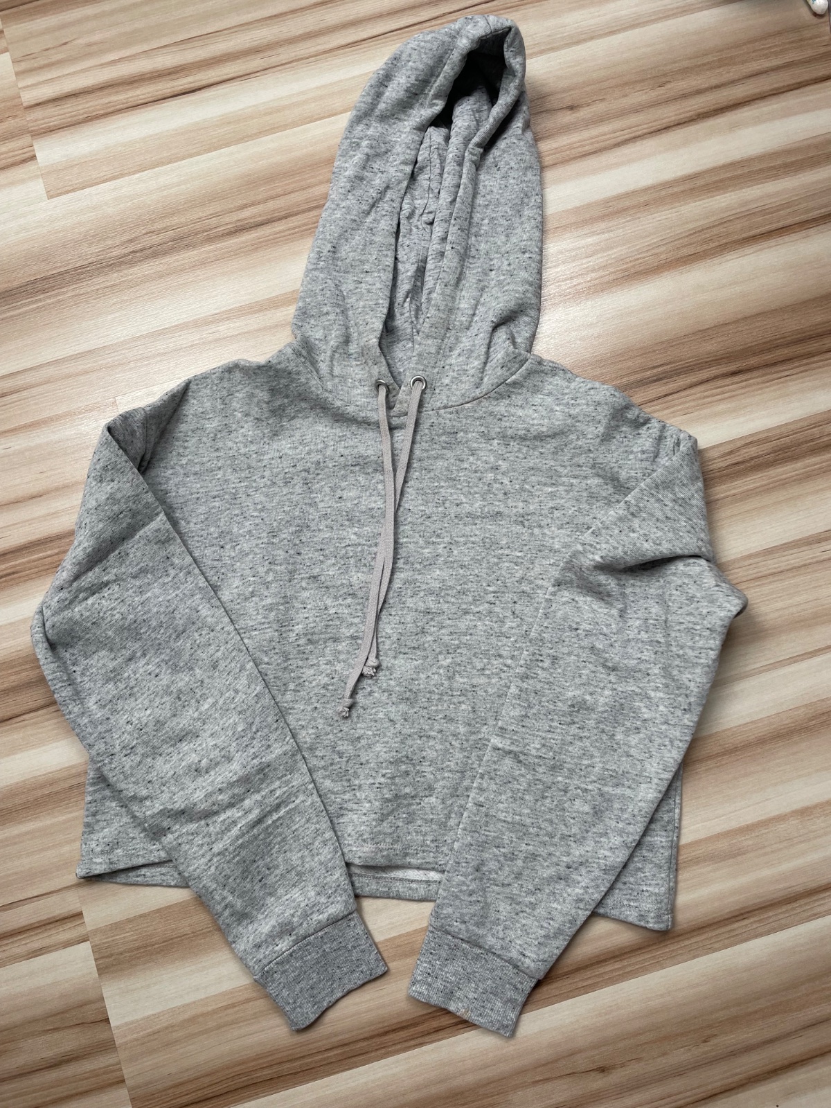 Top stav bez poškodení a známok nosenia ako nová. Veľkosť: 32/34 Značka: H&M Materiál: 77% Bavlna, 18% viskóza , 5% elastan Miery: obvod hrudníka: 2x 41-53 cm dĺžka rukávu od kapucne: 67 cm ce...