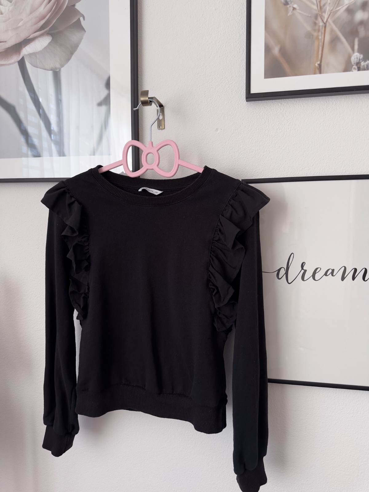 Štýlová mikina s volánikmi v prednej časti. Nosená pár x, nemá poškodenia.