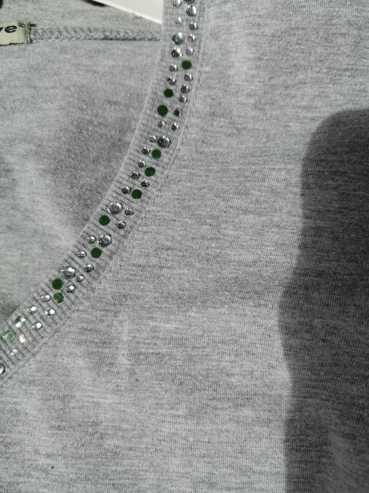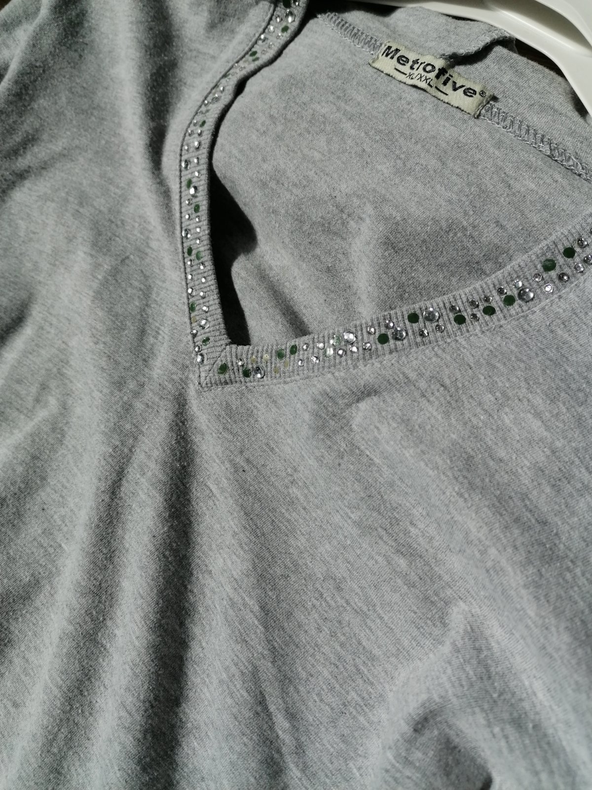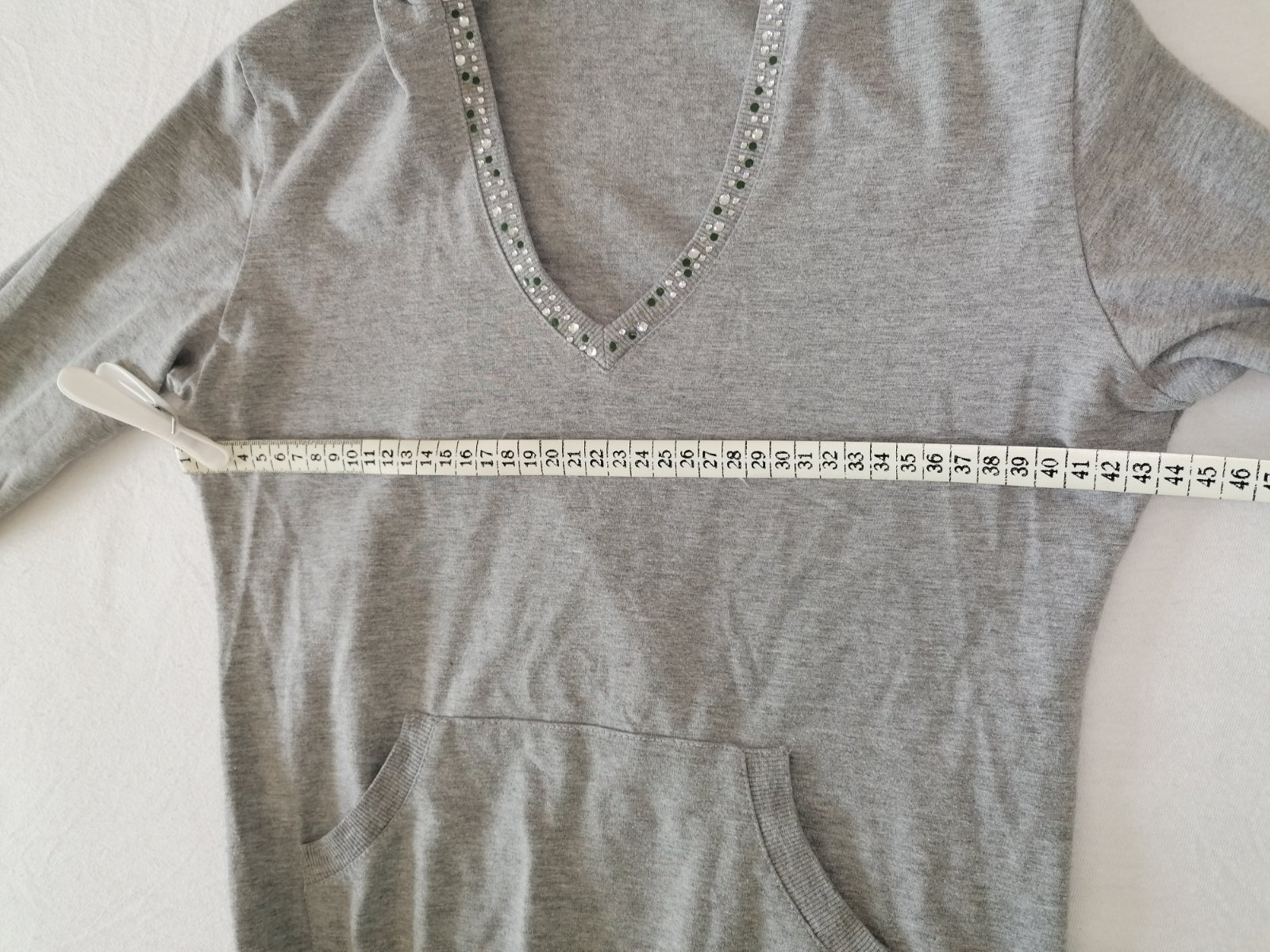 Top stav oblečená 2-3x, sivá melírovaná, čierny nápis Replay Šírka prsia cca 51, spodný patent 44 Rukáv od krku 73 Dĺžka od krku 65