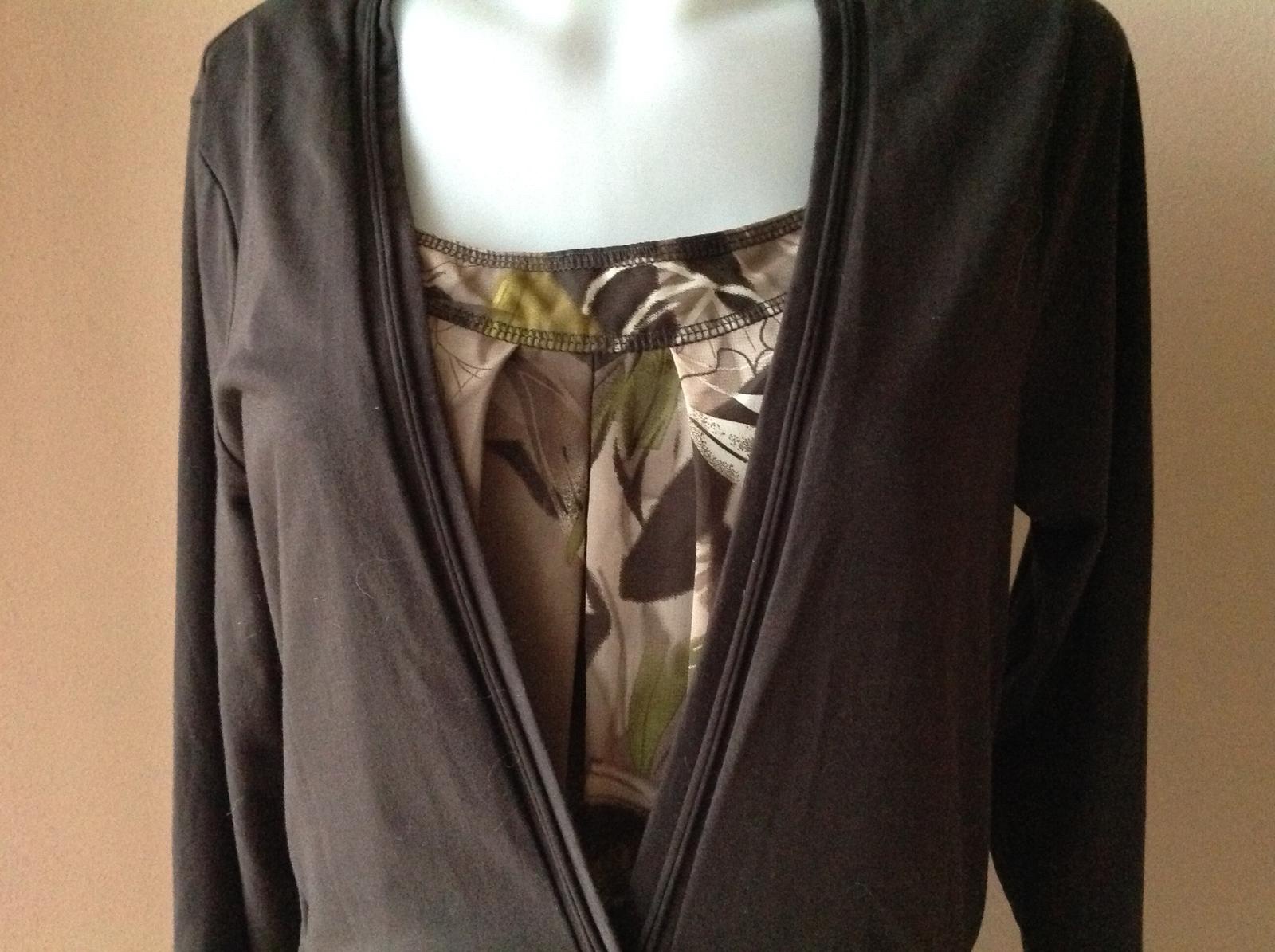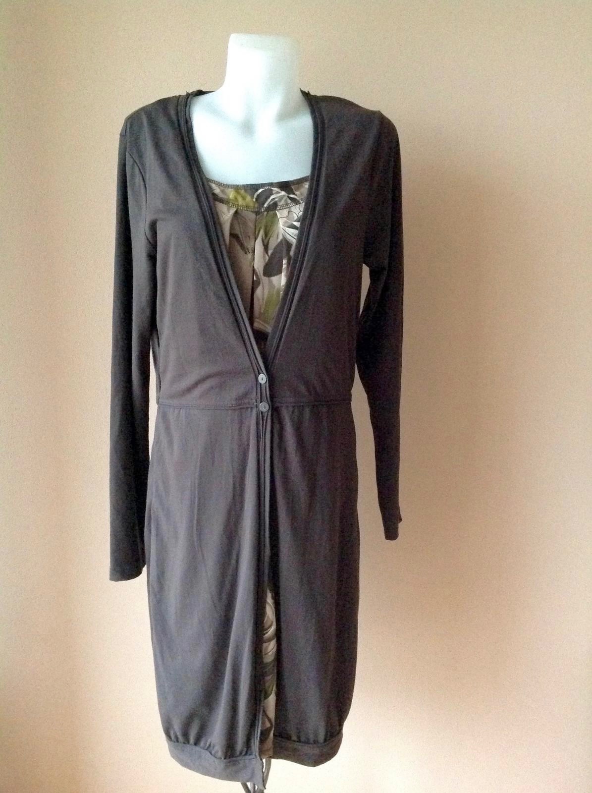 Krasny zaujimavy kusok,upletovy dlhy sveter v prednej casti vsity akoby top,ako keby ste mali saty a na tom sveter,bezchybny,velkost udana L