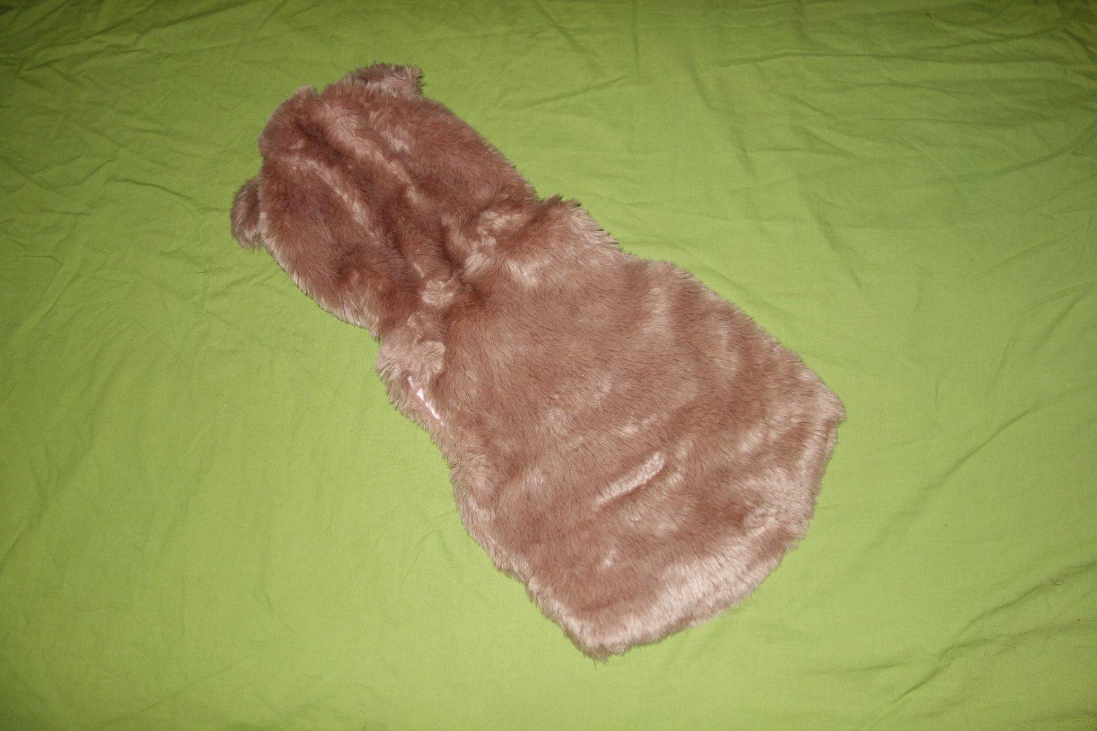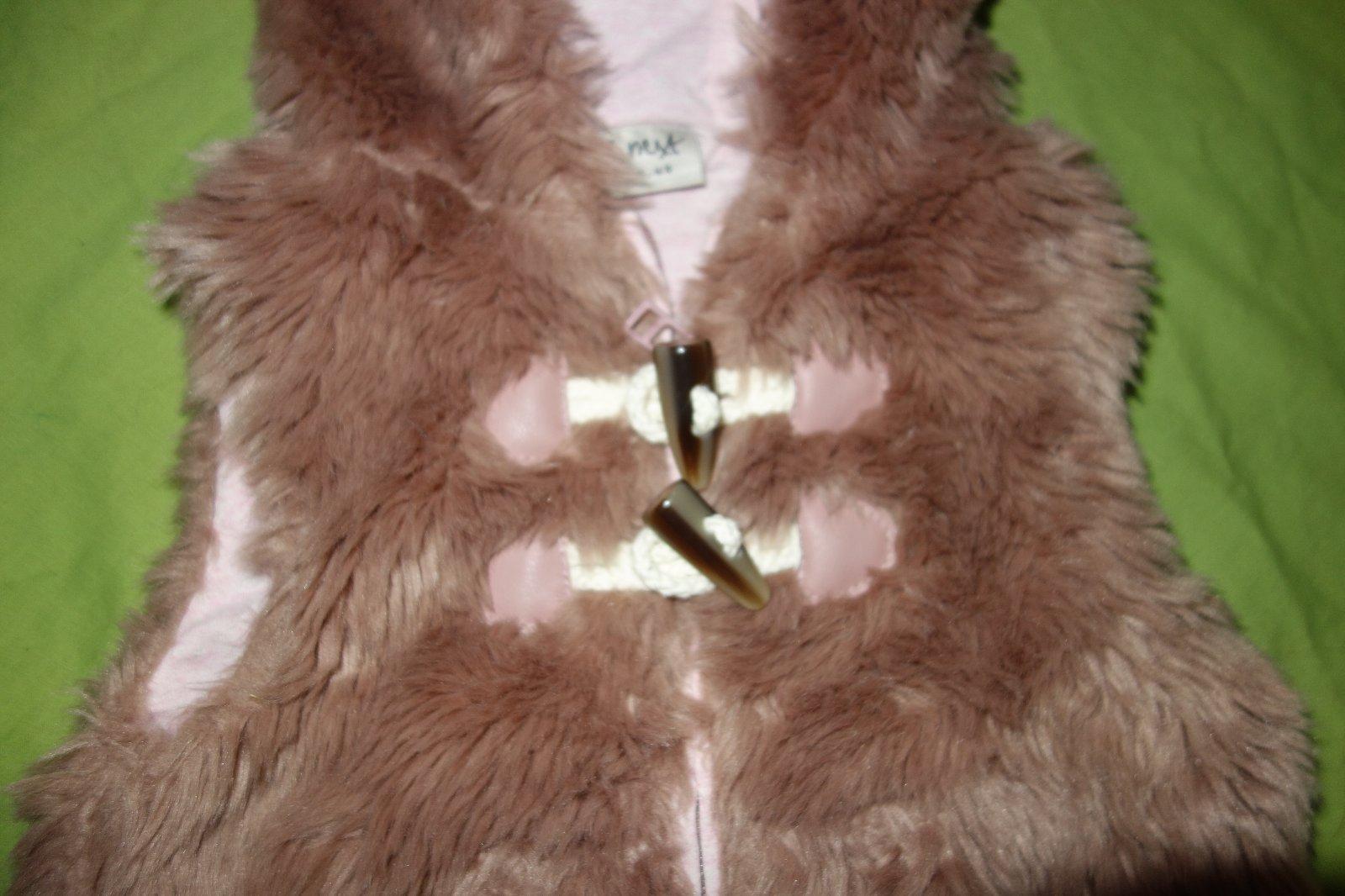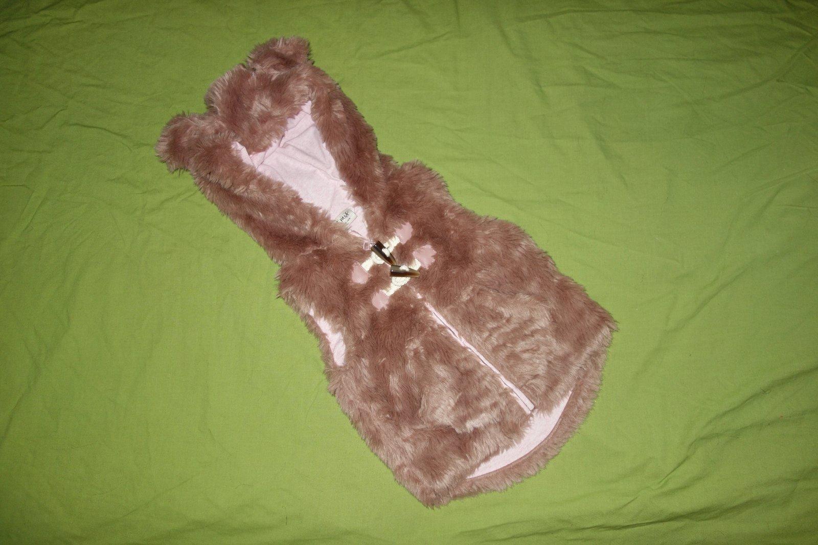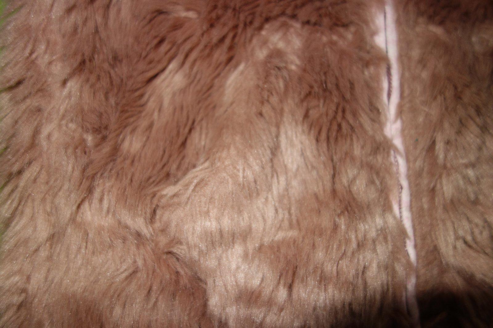 Krasna vesticka z umelej kozusinky vo velmi dobrom stave. Zapina sa na zips. Je staroruzovej farby.