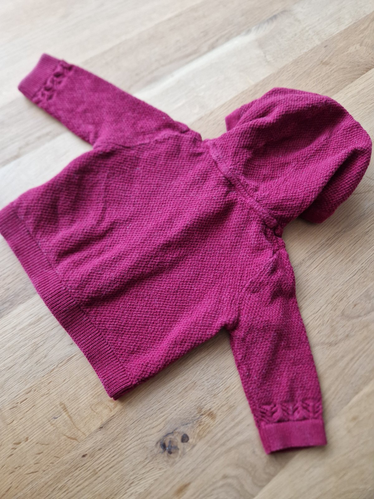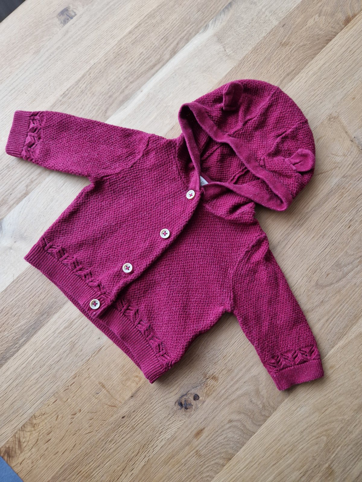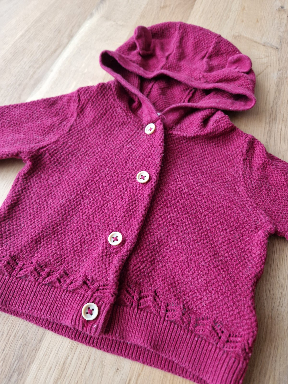 Krásny svetrík, oblečený max 2x, bez poškodení a zatiahnutí, na kapucni s uškami, bábo využije aj dlhšie 🙂