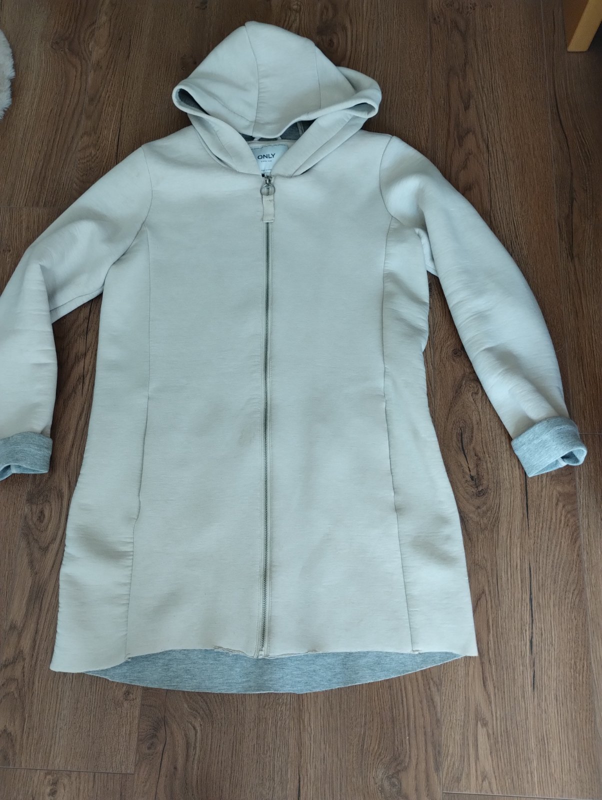 Tenká mikina, chladivý materiál. Bežné známky nosenia, dĺžka 65 cm