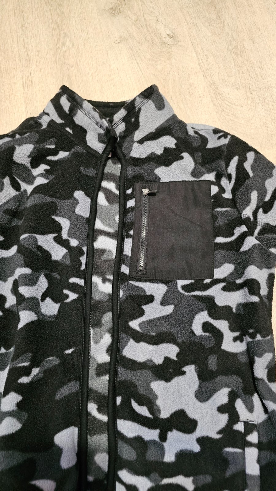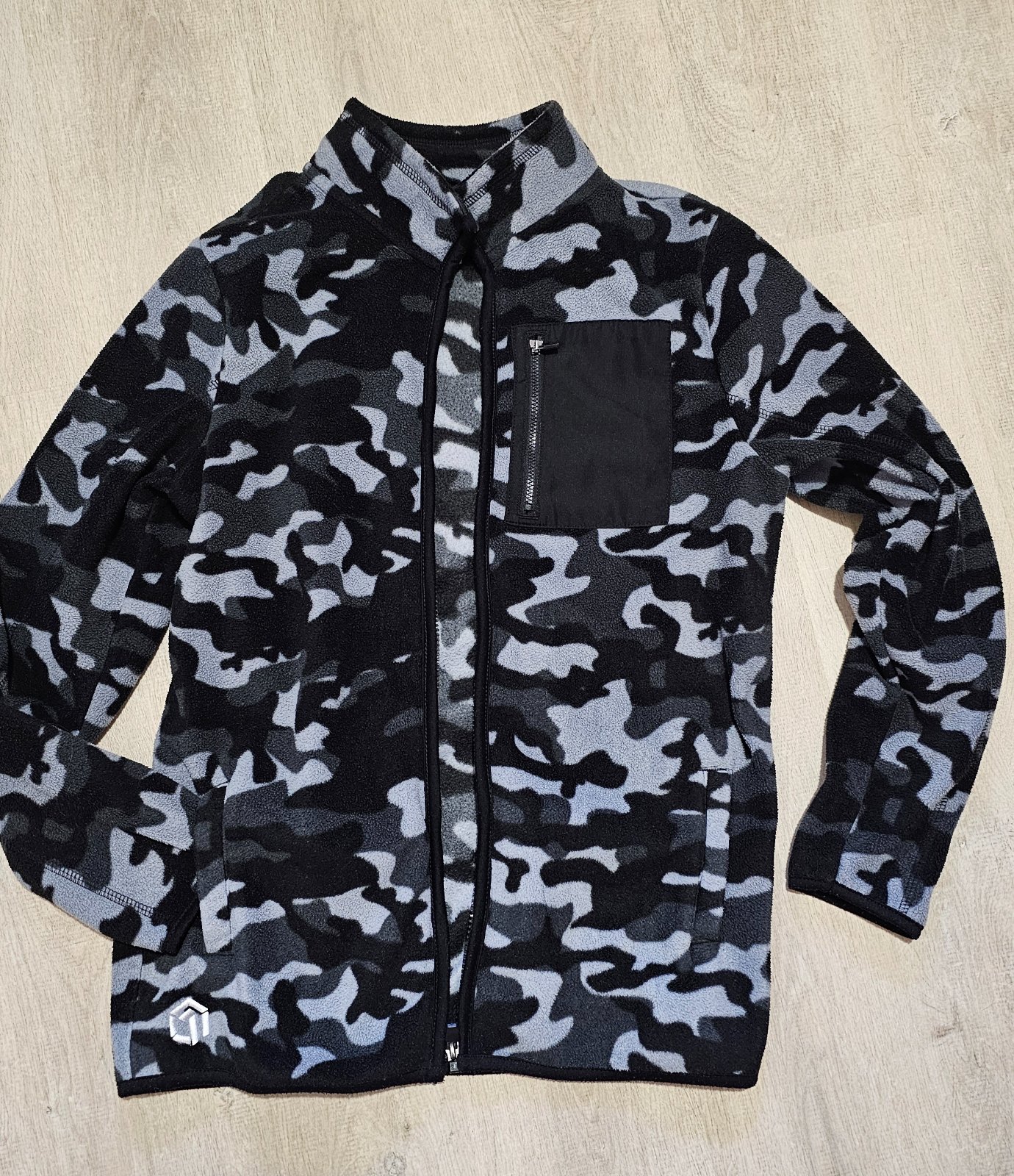 Chlapčenská mikina značky F&F, v čiernosivom maskáčovom vzore. Veľmi dobrý stav. Dĺžka 62 cm, dĺžka rukáva 60 cm, šírka 49 cm. Cena 2 eurá + poštovné.