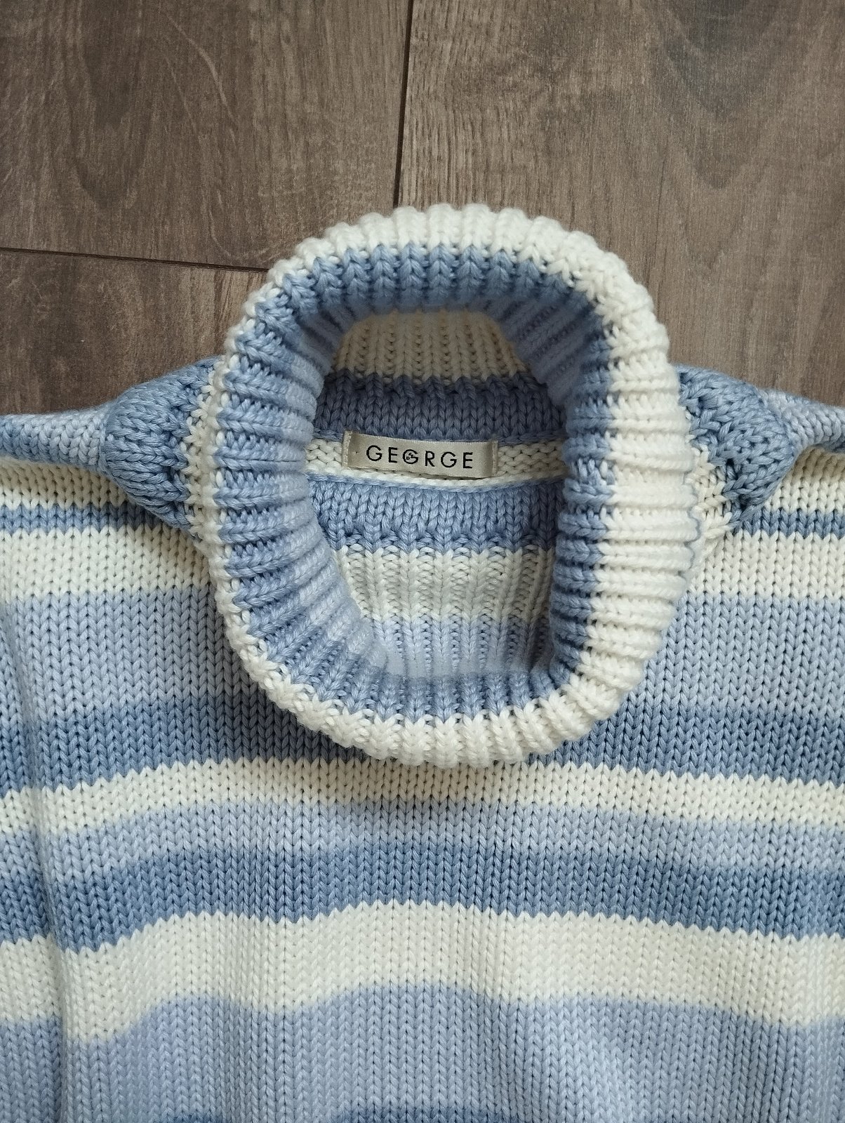 Predám dámsky štrikovaný modrobielý rolák. Značka George. Veľkosť sedí na M. Nosený len raz. Žiadne poškodenie.