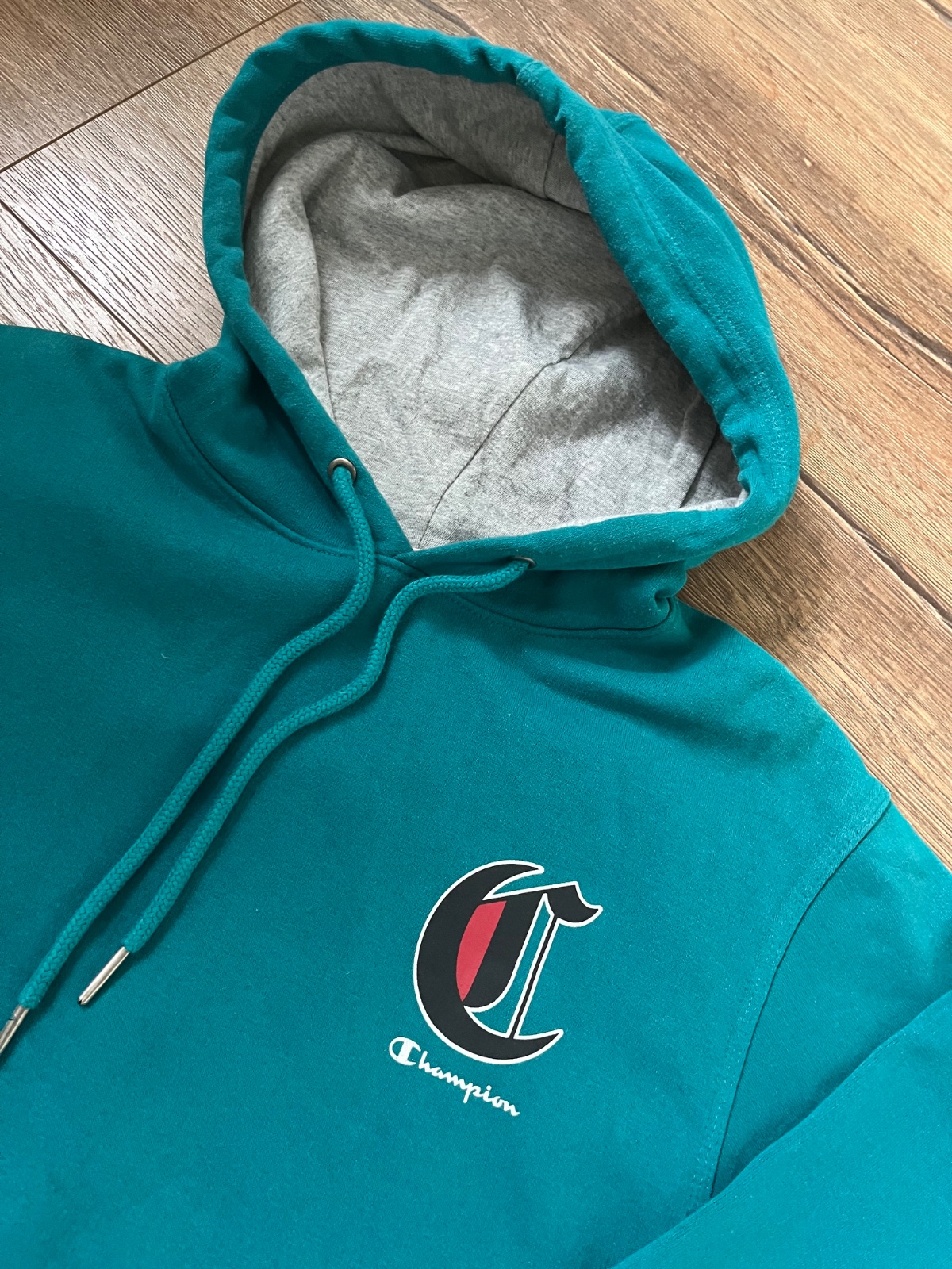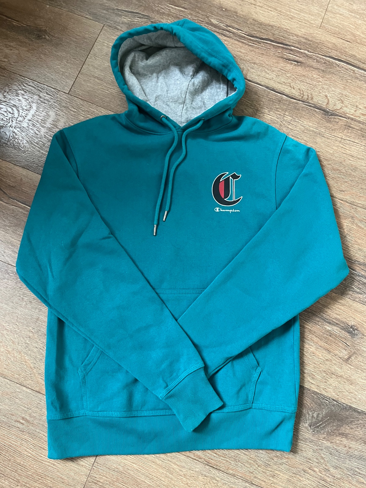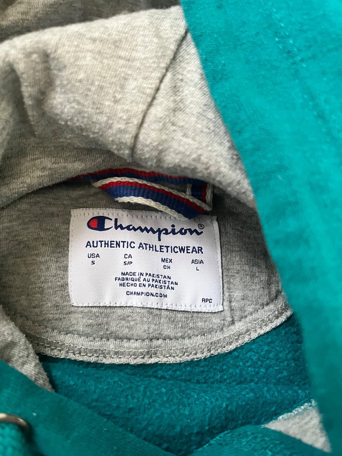 Champion chlapčenská mikina s kapucňou v dobrom stave bez poškodenia. Mierne známky bežného použiťia. Potlač loga Teplákovina S kapucňou Rebrovaný spodný lem Rebrované manžety Klokanie vrecko Male...