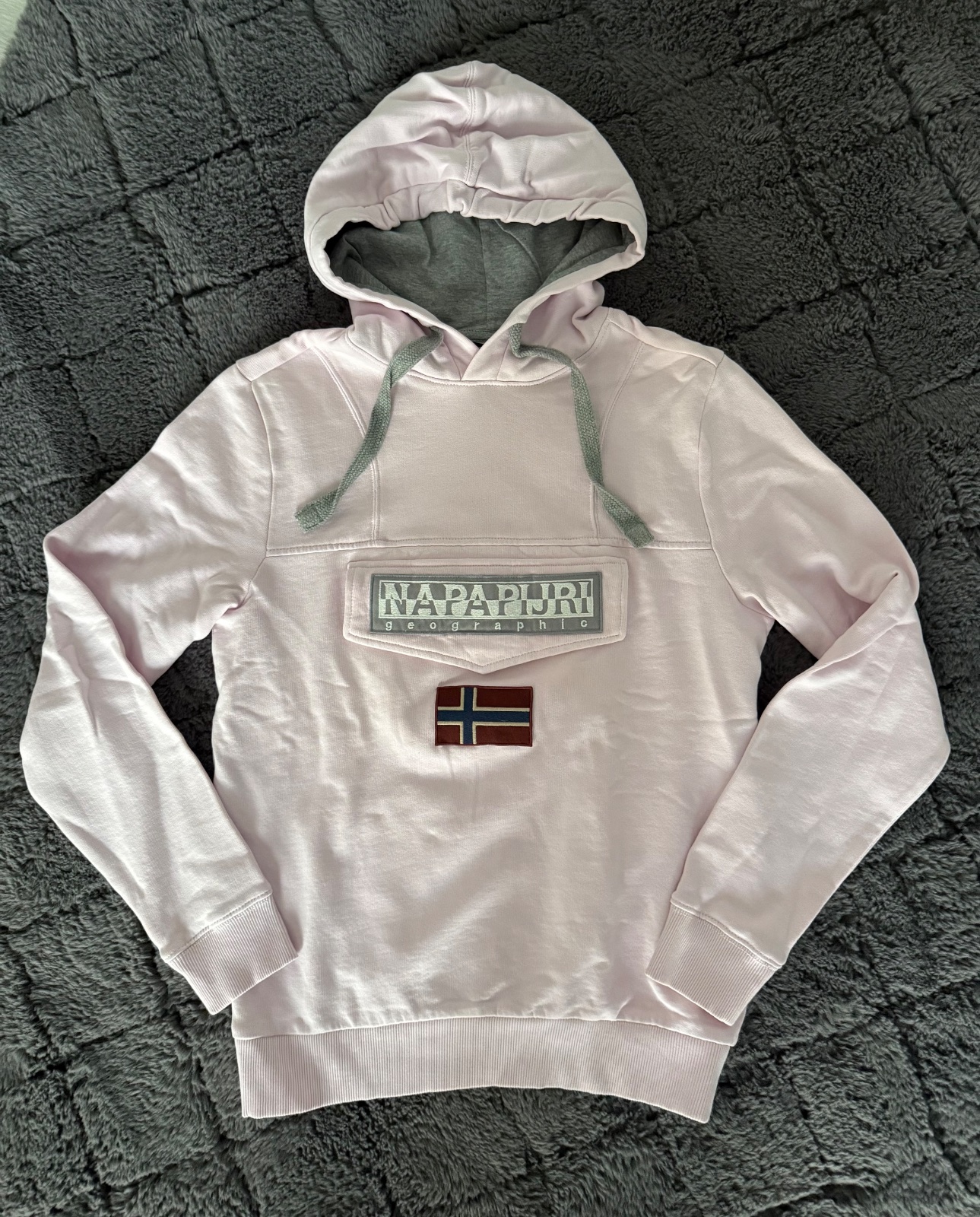 Krásna svetlulinko fialová mikina Napapijri. Nová, len skladovaná. Velkost XXS, sedí na klasické S. Miery: šírka 49 cm, dĺžka od ramena 61 cm.