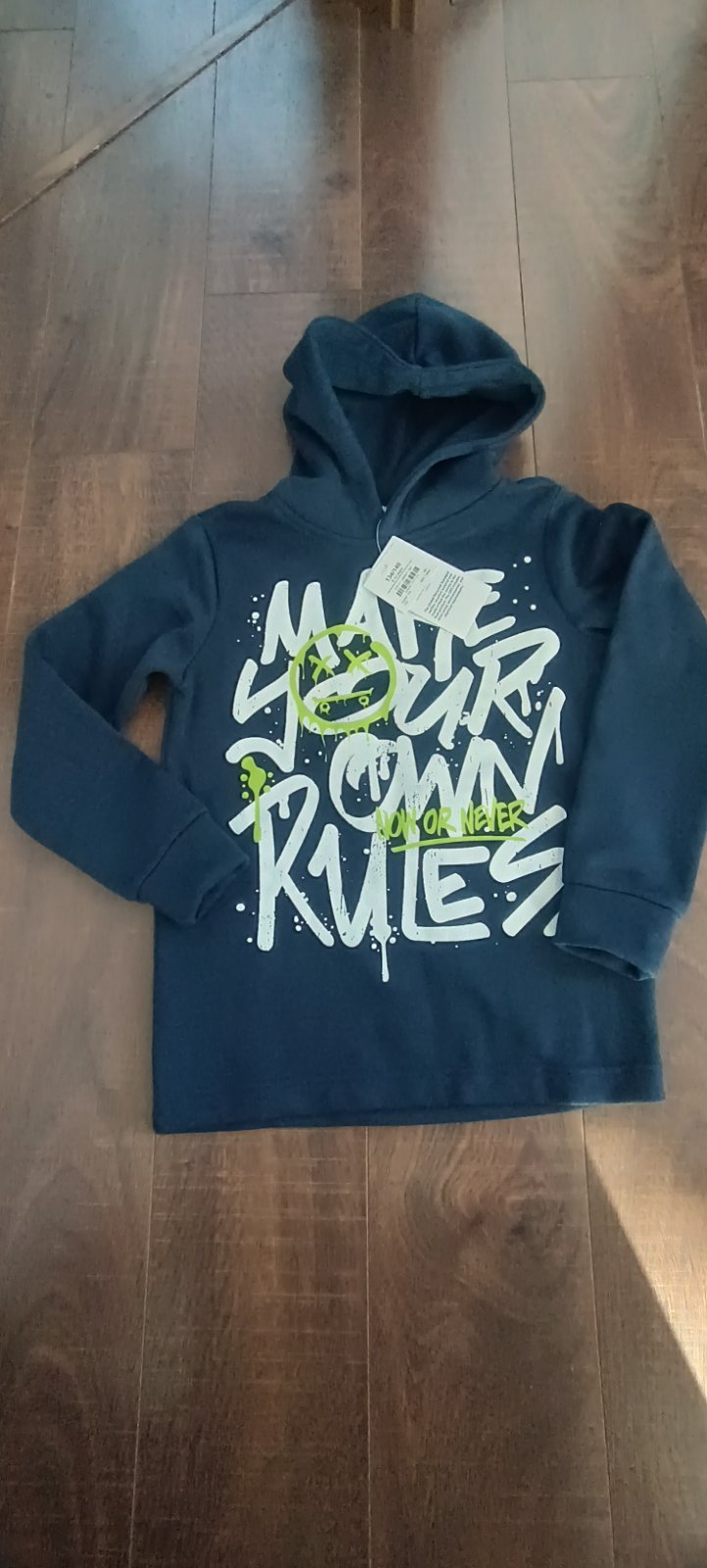 Krásna, frajerska mikina, kupovana v Takko, veľkosť 134/140, bohužiaľ nám úzka, s visačkou, vhodná ako darček
