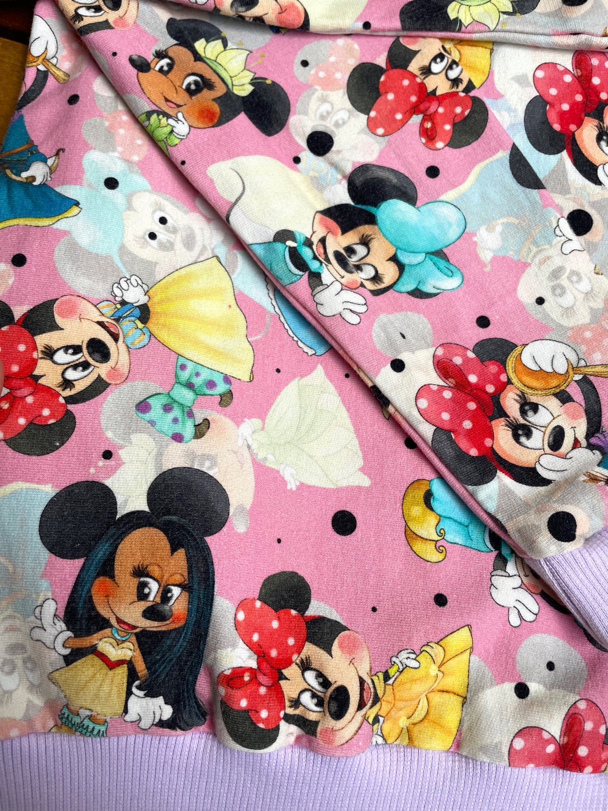 Roztomilá mikinka slovenskej značky Dam Dam & Bibi. Mikinka je praná, ale žmolky nemá a farby sú ešte pekné. Určite ešte poteší nejaké detské srdiečko. Našla som jednu ružovú nevyprateľnú bodku (viď. foto), ktorú pri nosení, vďaka pestrofarebnej látke nevidieť. Dcérka mikinu nosila už od veľkosti 104, preto uvádzam presné miery: