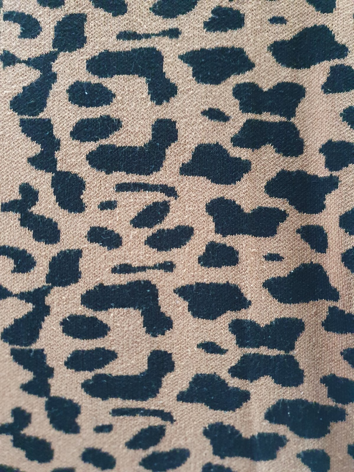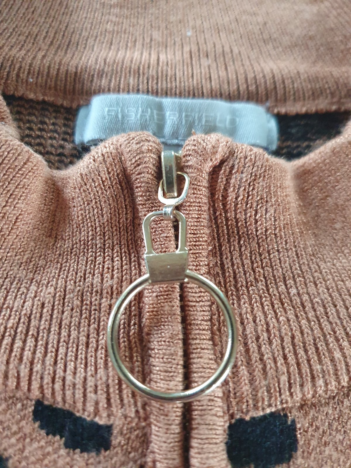 Výborný nosený stav. Sem tam jemné žmolky. Stredne hrubý. Písaná veľkosť 38, ale je užší. Šp paz 41, pás 35, dĺžka 60, rukáv od krku 7.5+59.5