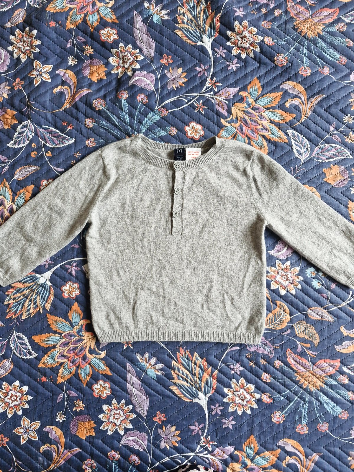 Nádherný svetrík, veľkosť 18-24m, odporúčam 86/92. Obsahuje podiel vlny, veľmi príjemný na dotyk.