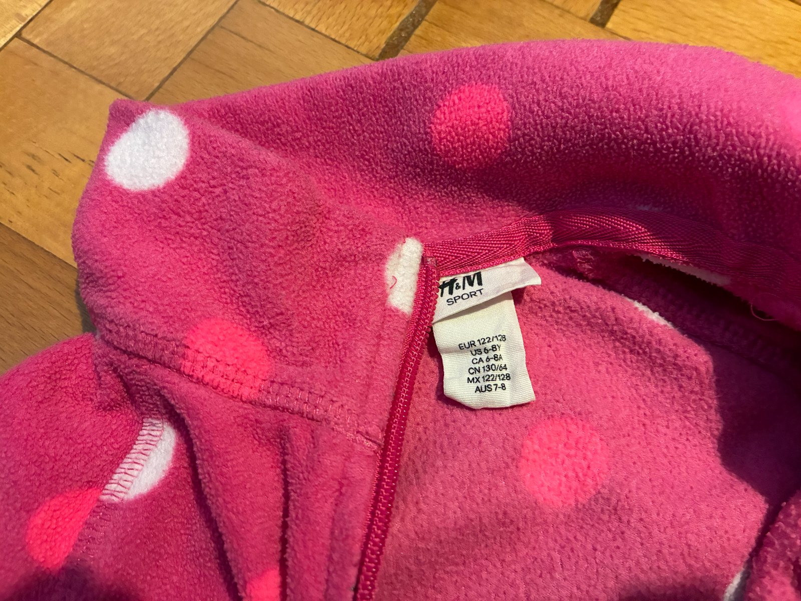 Flísová mikina v peknom nosenom stave, na rukávoch otvory na palec. Pri fotení som si všimla maličkú chybu - odfotené na poslednej fotke, takmer nevidieť. Veľkosť 122/128.