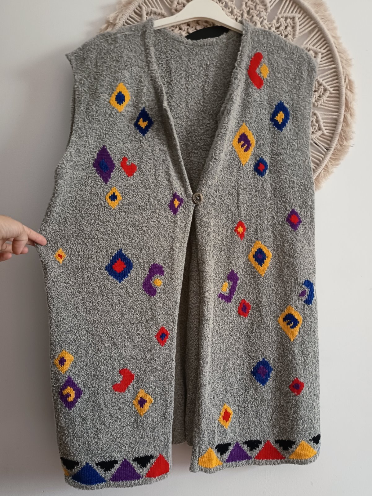 Predám šedú - odtieň grafit - úpletovú vestu. Značka: Atmosphere Bez známok nosenia Veľkosť: Na štítku je síce veľkosť ,,S", ale je to taký oversize kúsok - tak som ju aj kupovala Šírka v podpazuší...