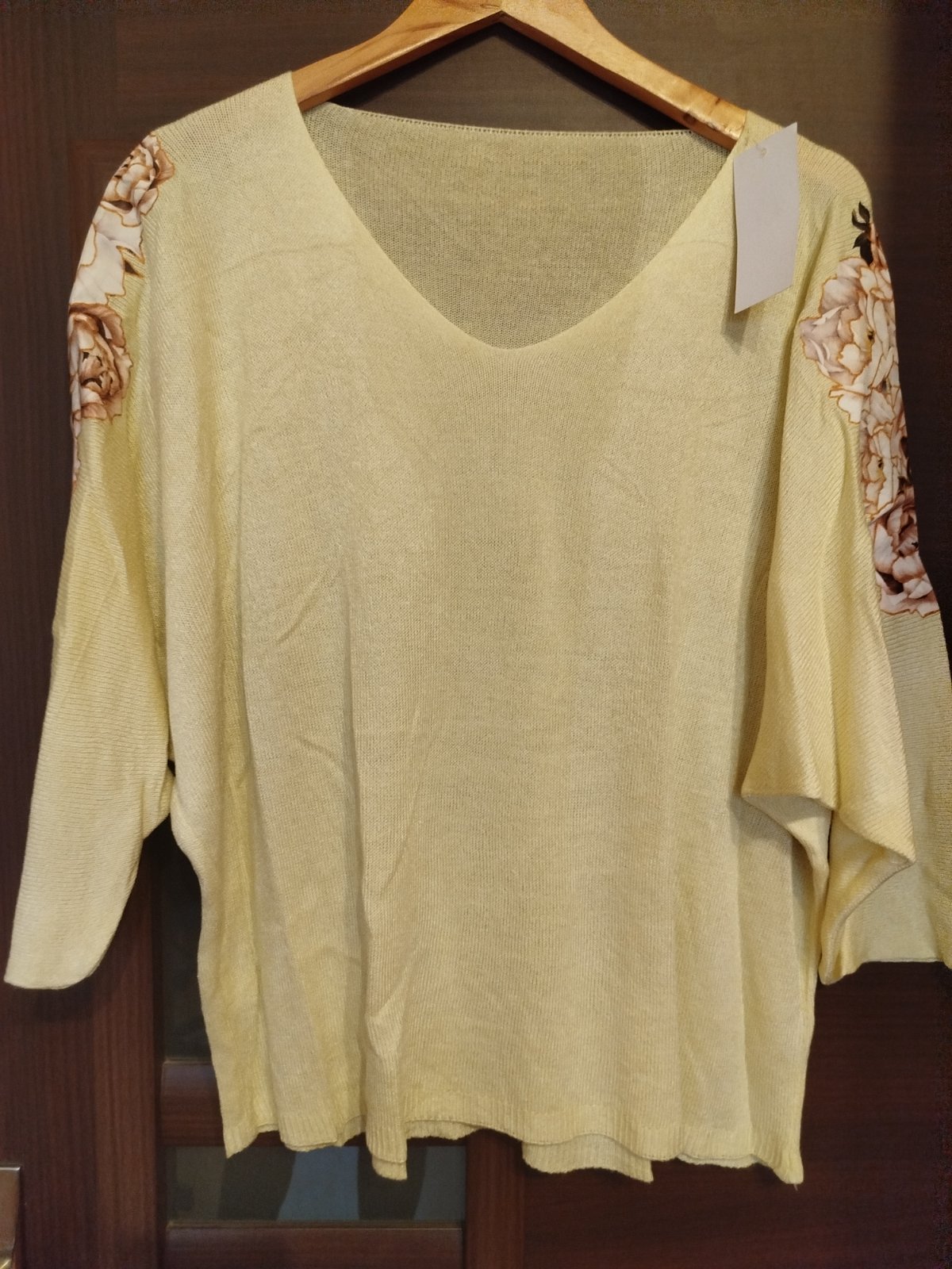 Sveter, pulóver XL XXL XXXL 42 44 46 48 Pre dámy Cez hlavu Bez kapucne Iná značka Bledožltá Žltá Bledohnedá