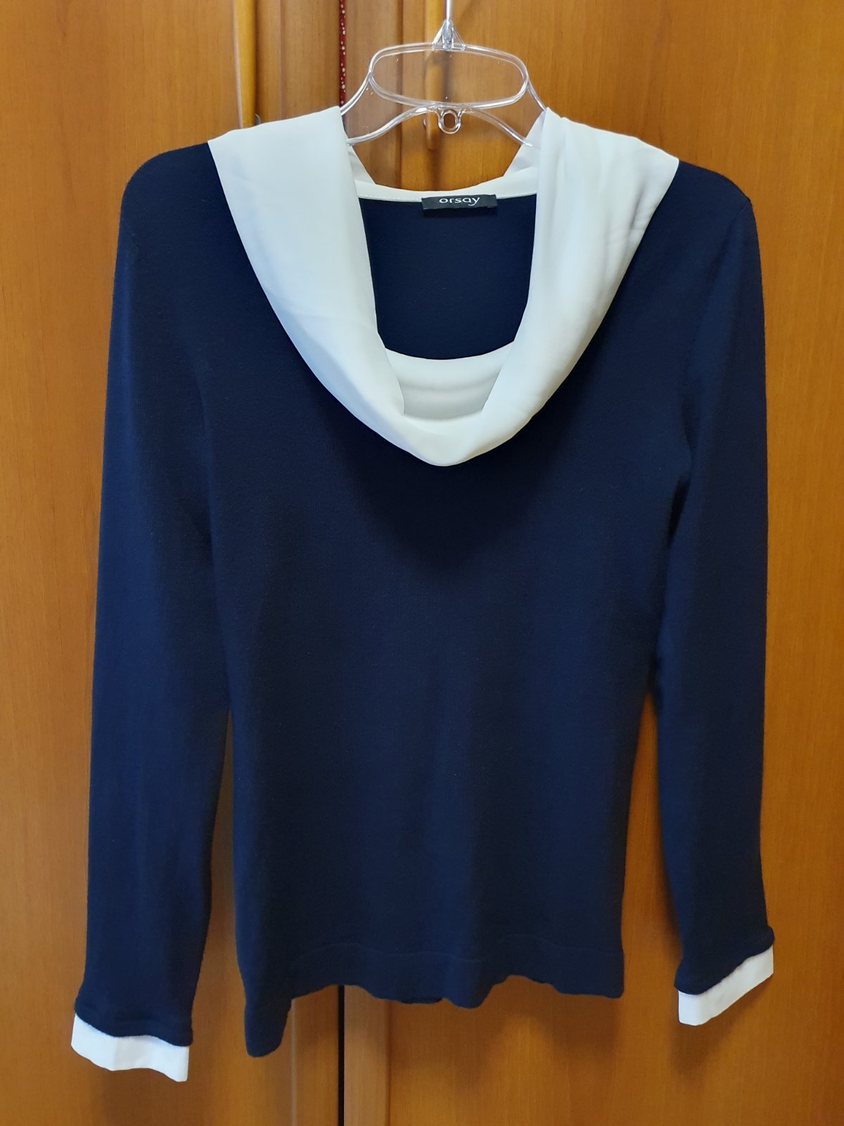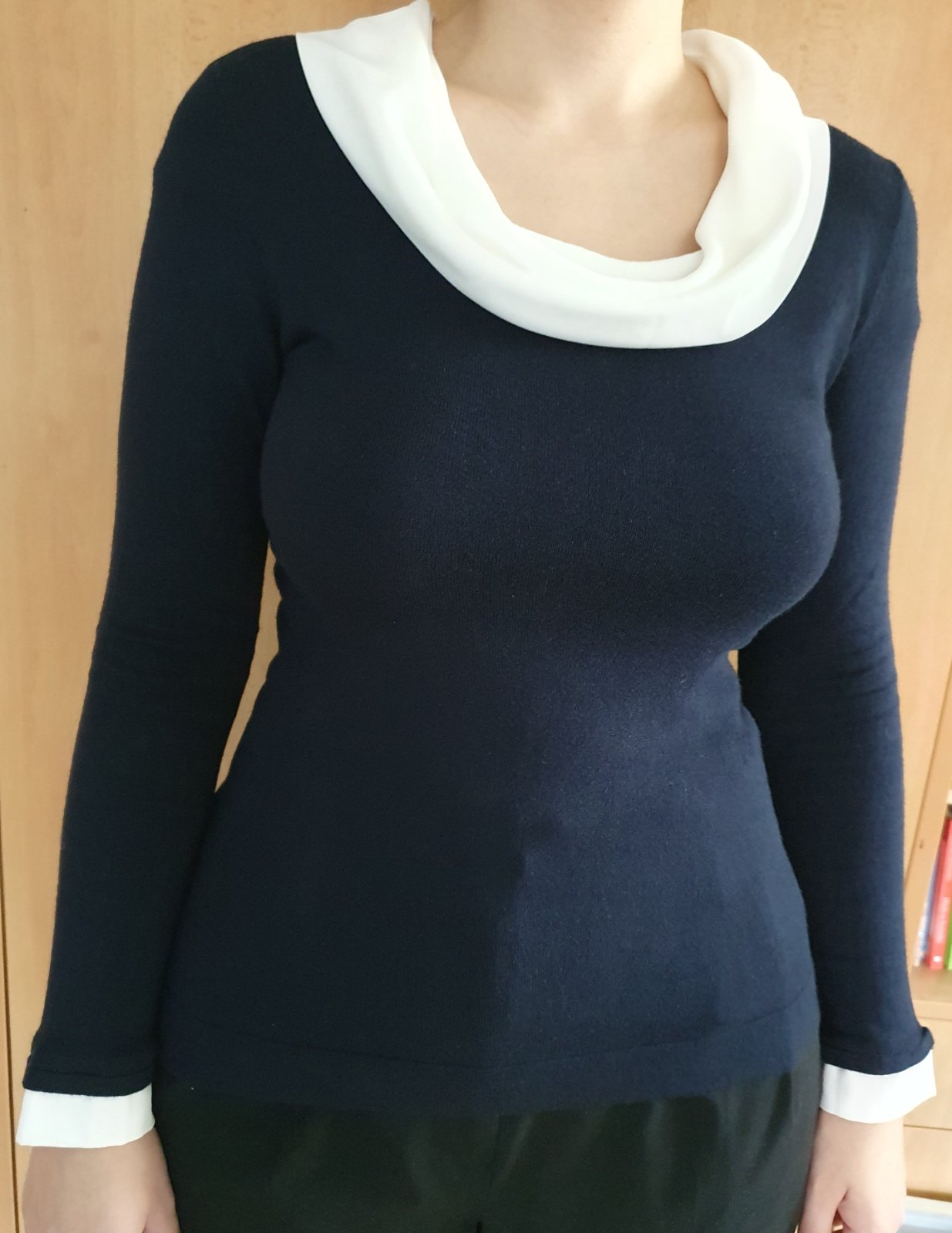 Elegantný pulóver s bielym golierom a manžetami, super stav, nenosený.