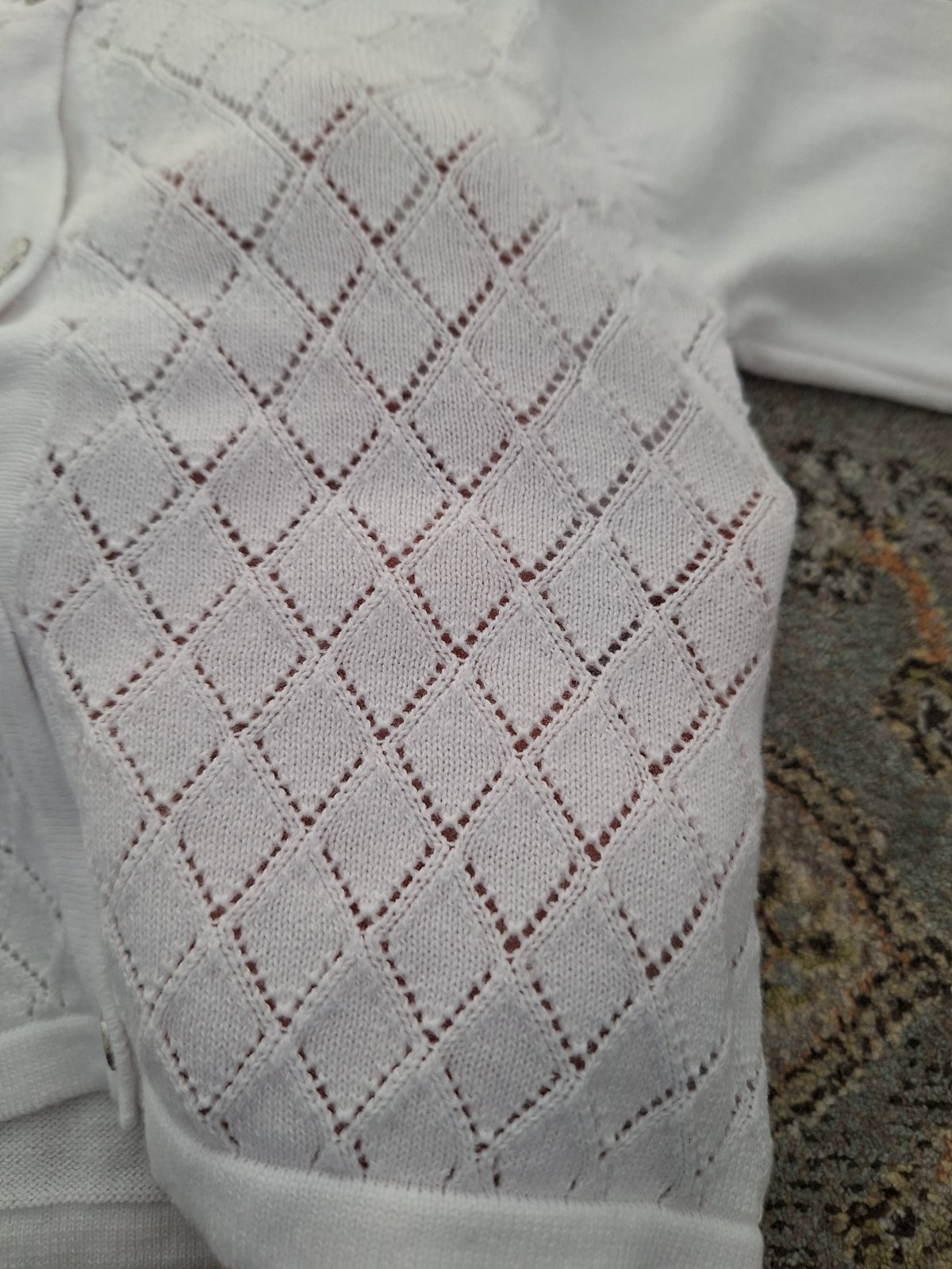 Jarný/letný kardigán, 2-3x oblečený, ako nový. Bez poškodení. Krásny dierkovaný vzor, z bavlny.