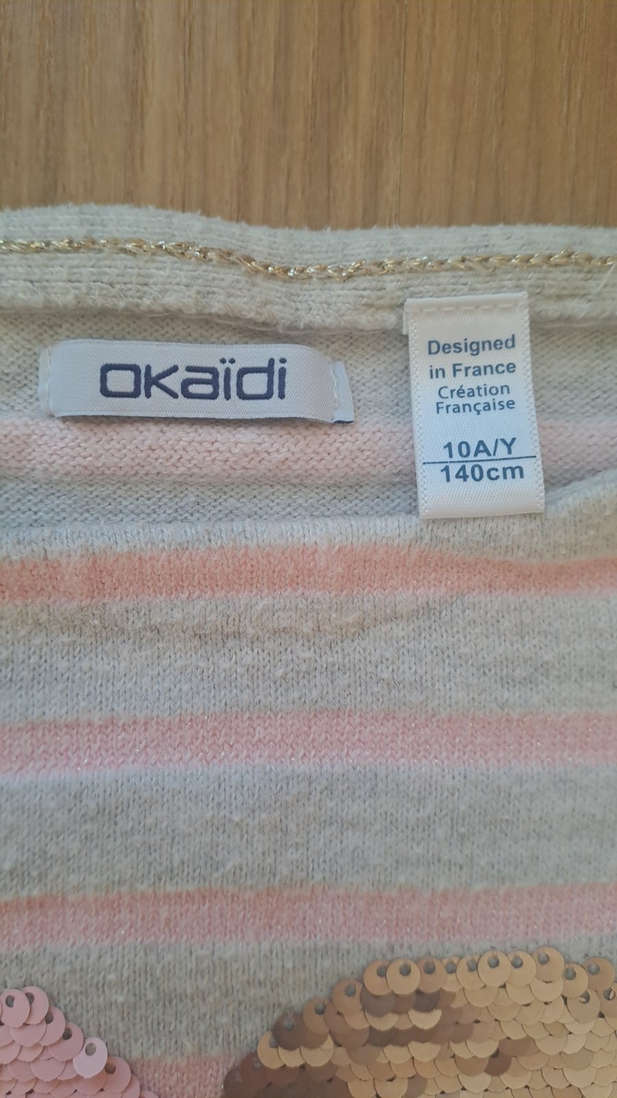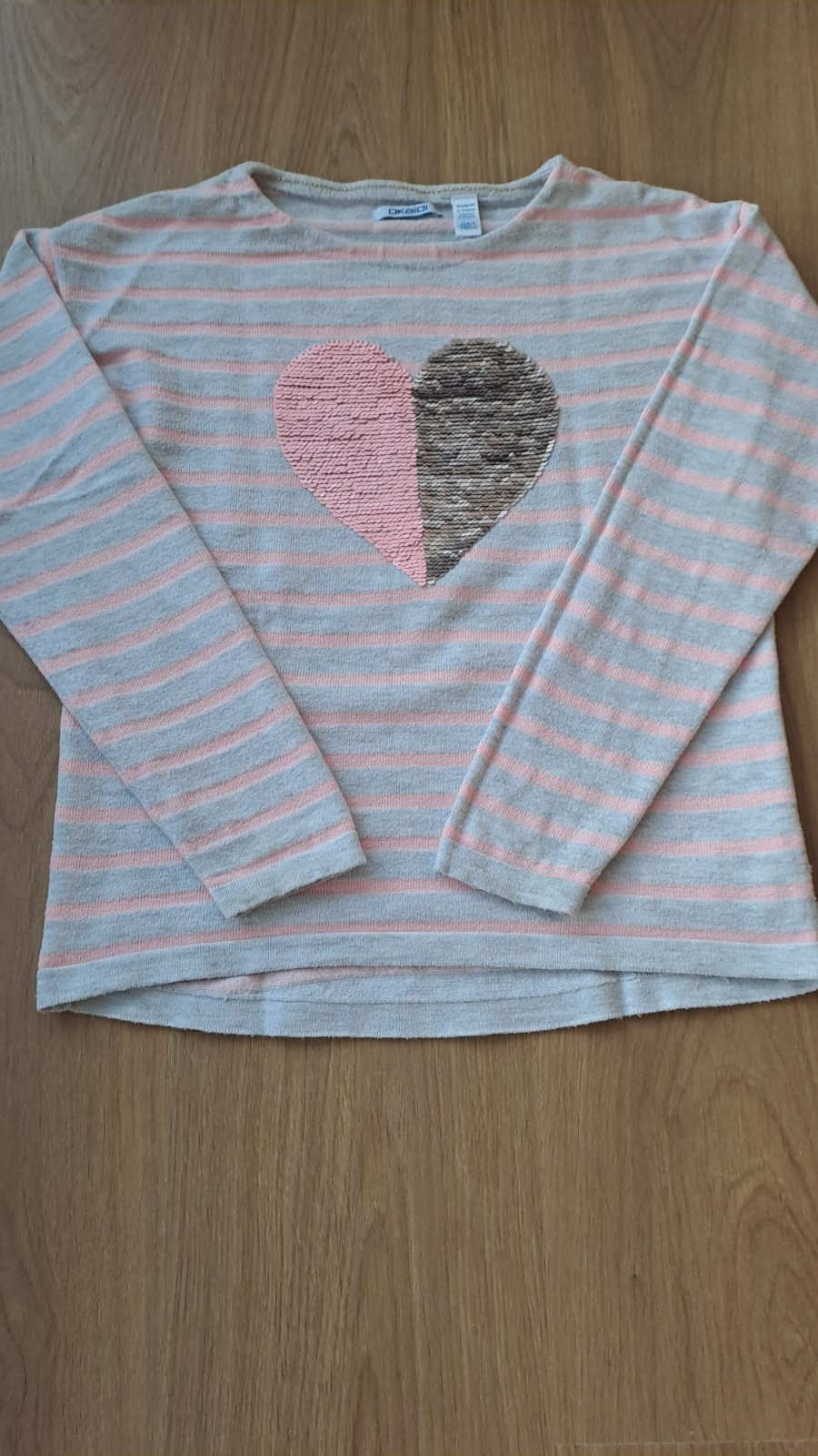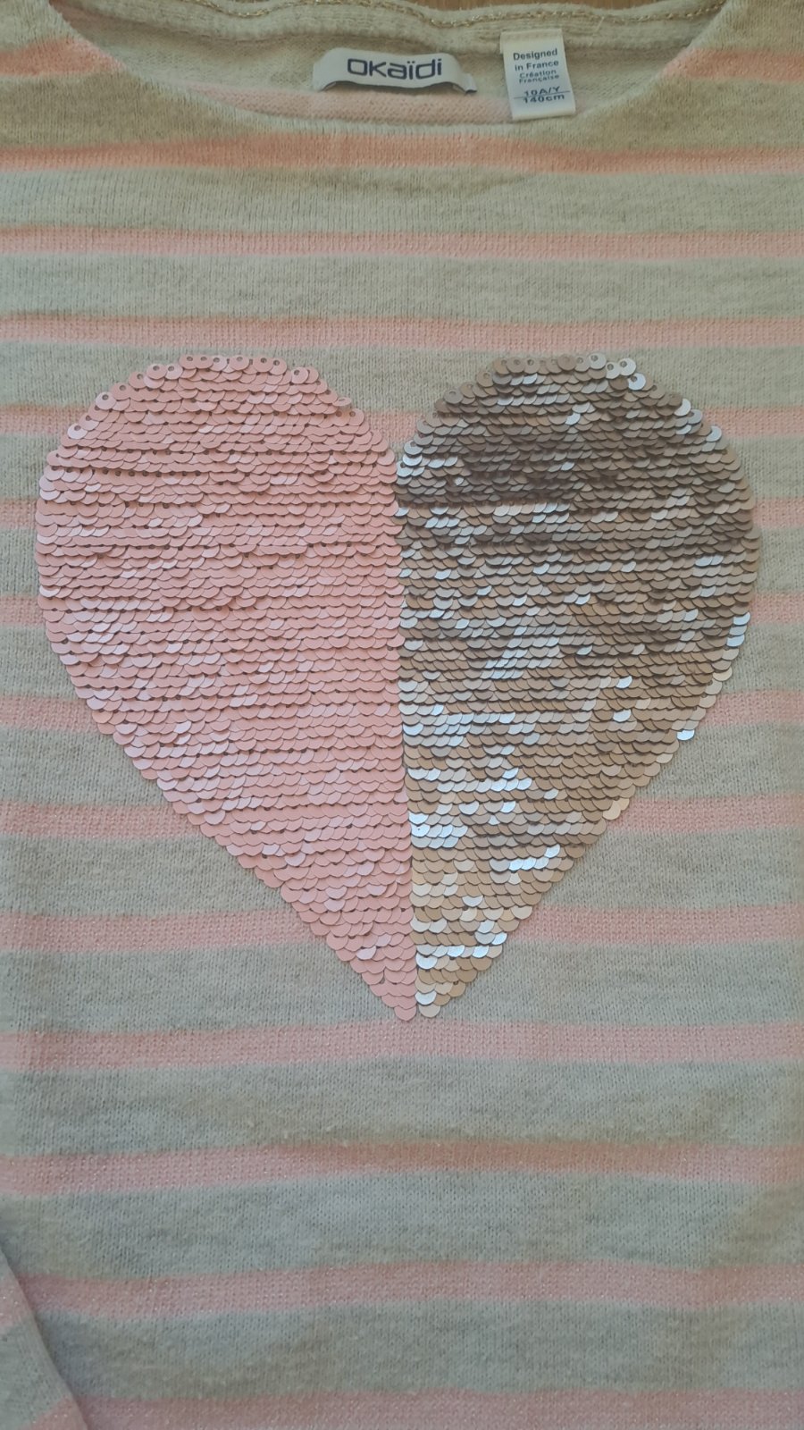Úpletový svetrík s flitrovým srdiečkom francúzskej zn. Okaidi, veľ. 140/ 146.
