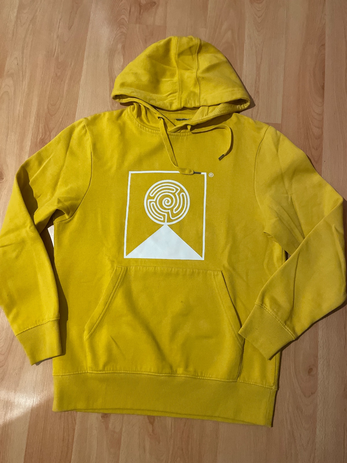 Mäkkulinká štýlová mikina v žiarivej žltej farbe v kontraste s čiernym vyšívaným nápisom. V super stave, bez poškodení. dĺžka 67 cm šírka prsia 54 cm šírka ramená 45 cm dĺžka rukáv od kapucne 70 cm