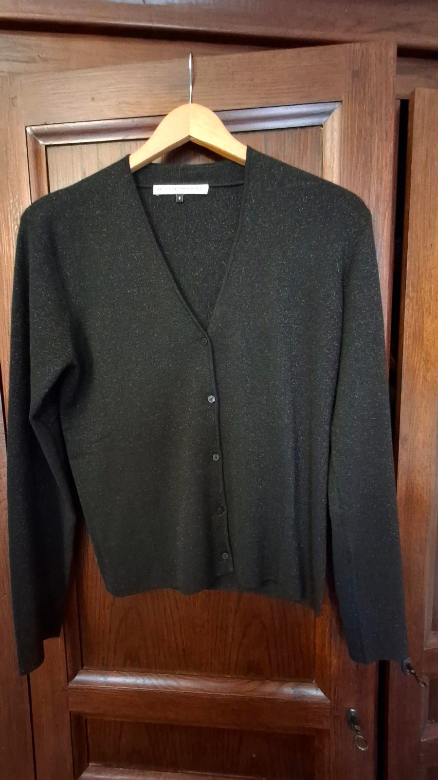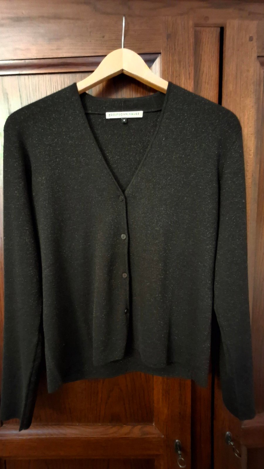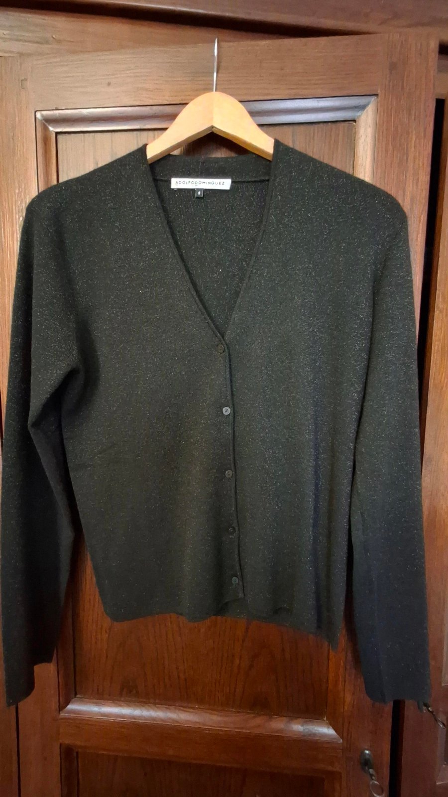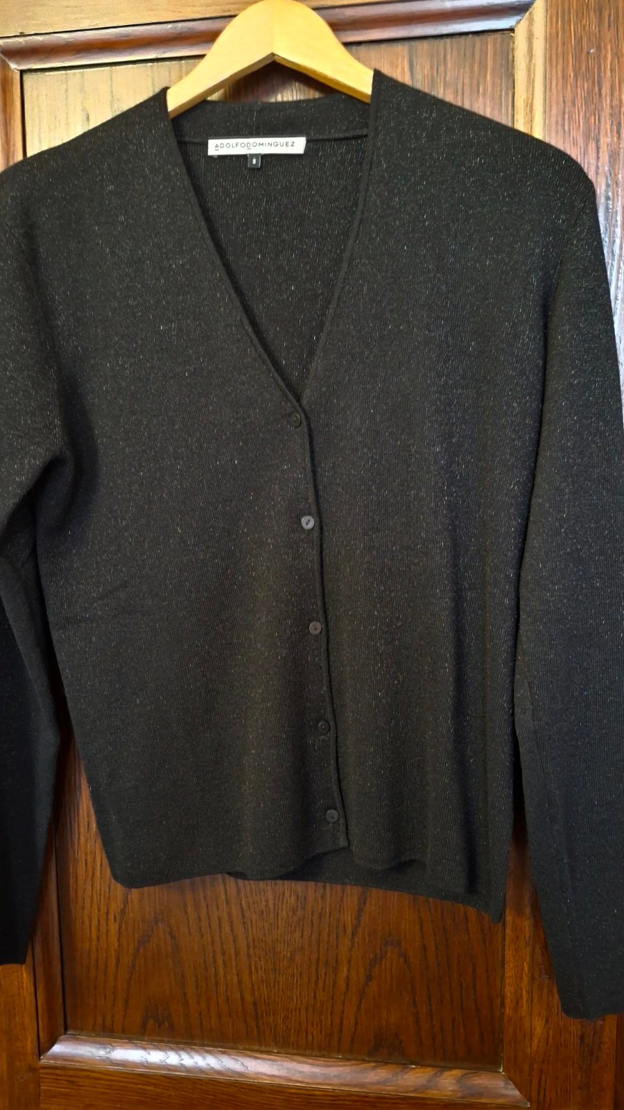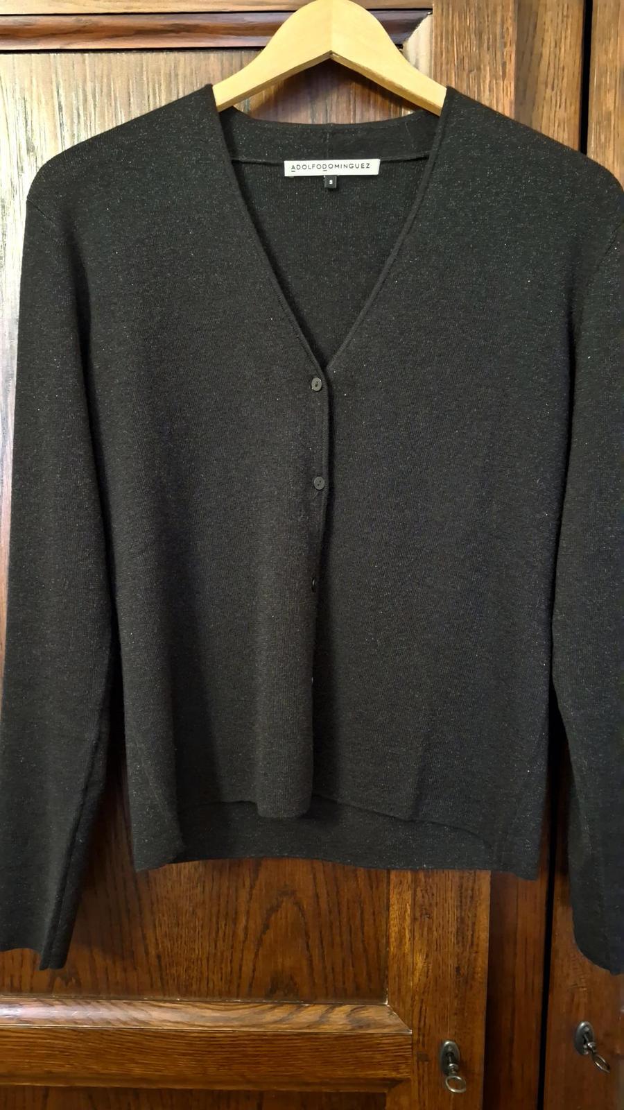 predám krásny trbllietavý kardigan, značka adolfodominquez, pôvodná cena bola 129 eur, Materiál: 43% Polyester - PES, 28% Merino vlna, 19% Polyakryl - PC, 5% Polyamid - PA, 5% Kovové vlákna
