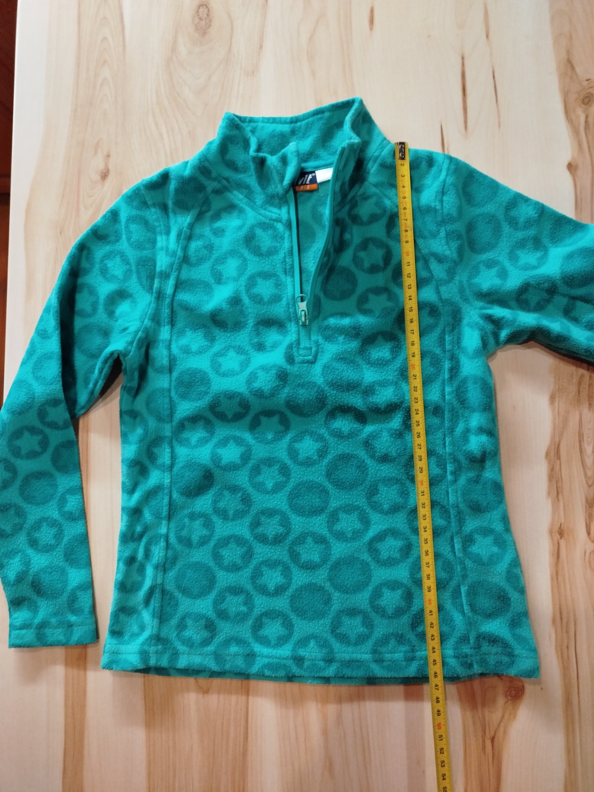 Oblečený raz, farba je sýtejšia - krajšia, má rovný strih, je pohodlný, pekný, no mne je široký. Celková dĺžka od ramena nadol 84 cm, šírka 54 cm, dĺžka od krku stredom nadol 75 cm.