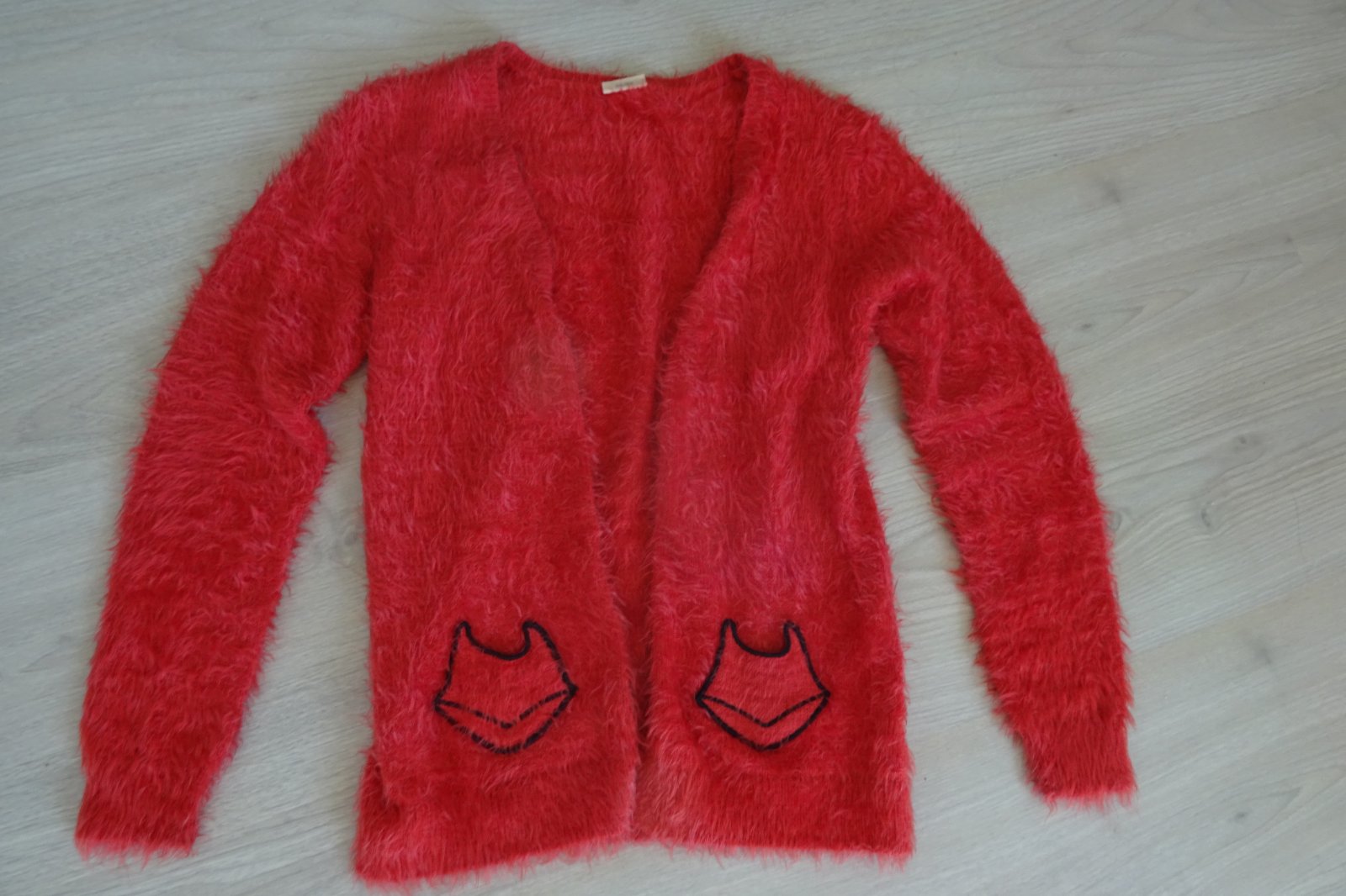 Ponúkam na predaj krásny sveter, kardigán bez zapínania, výborný stav, veľkosť 146/152, ale zdá sa mi vačšie číslo. Rozmery: CD 60cm, rukáv 68cm, pazušky 41cm. Cena: 6 eur.