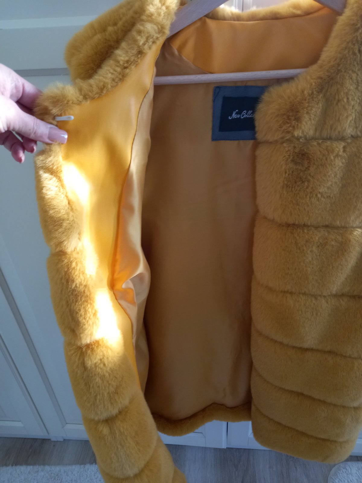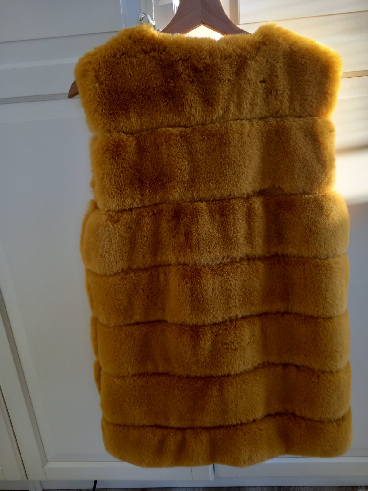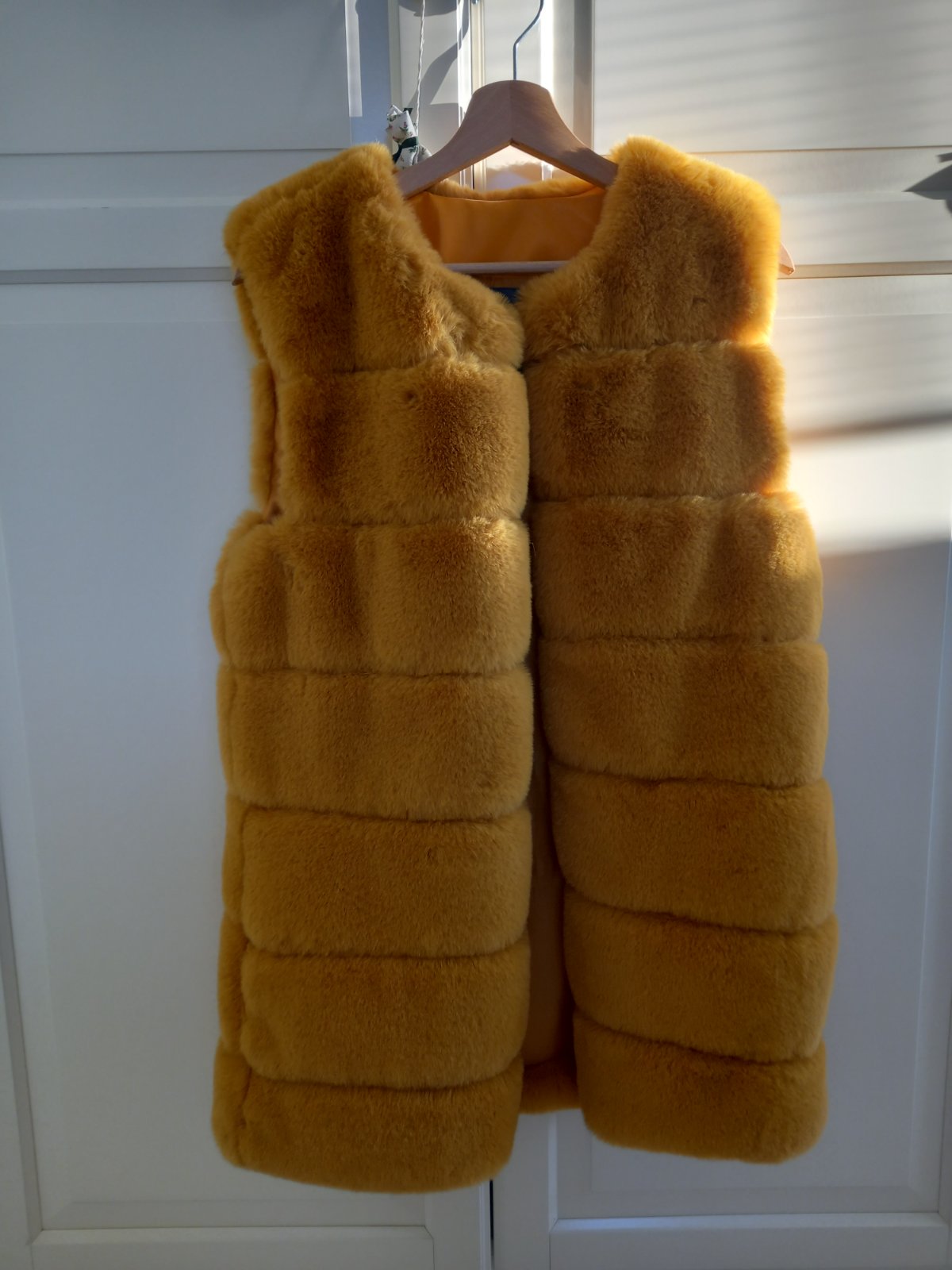 Krásna žltá kozusinova vesta ako nová asi 5x oblecena.