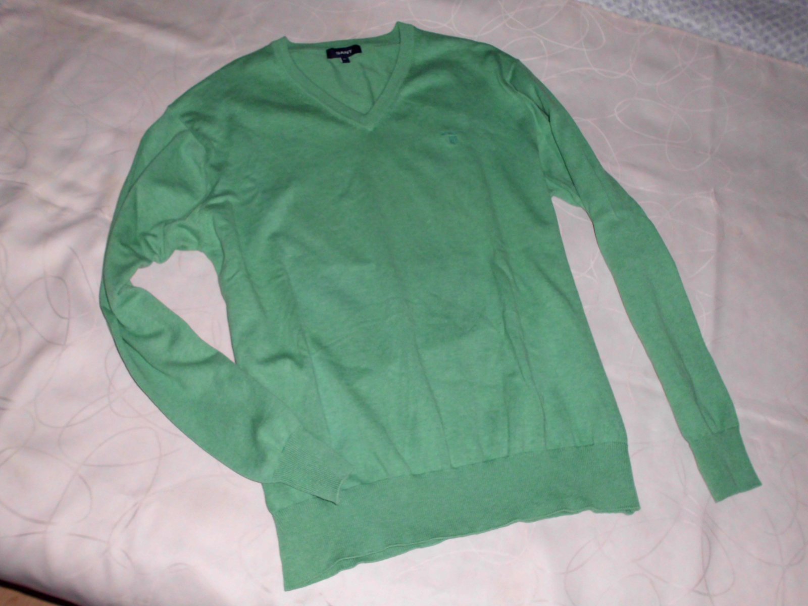 Predám pánsky sveter Gant vel. XL , šírka 60 cm, dĺžka 77 cm, rukáv od pleca 69 cm, príjemný nie hrubý materiál prispôsobivý postave, farba pekný zelený melír, super top stav