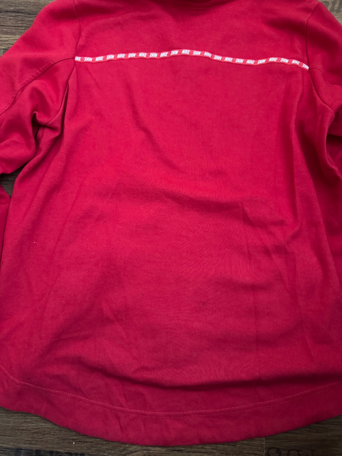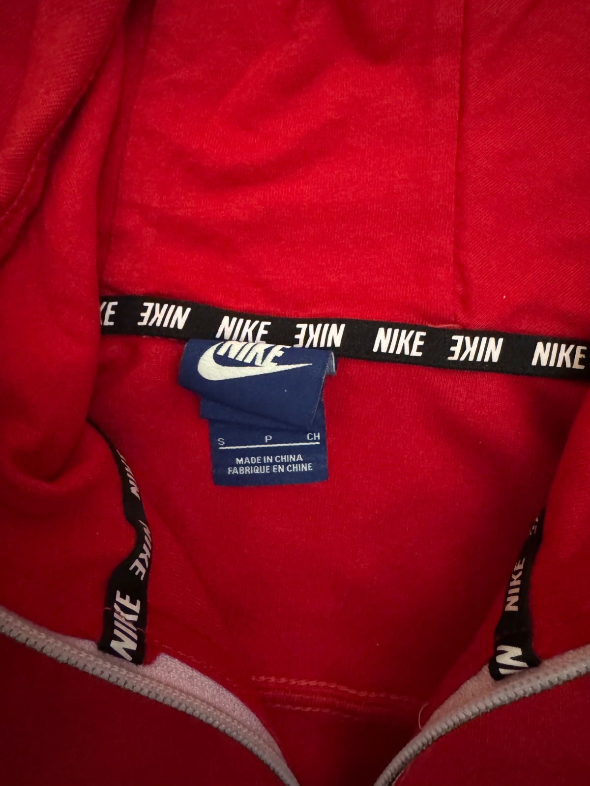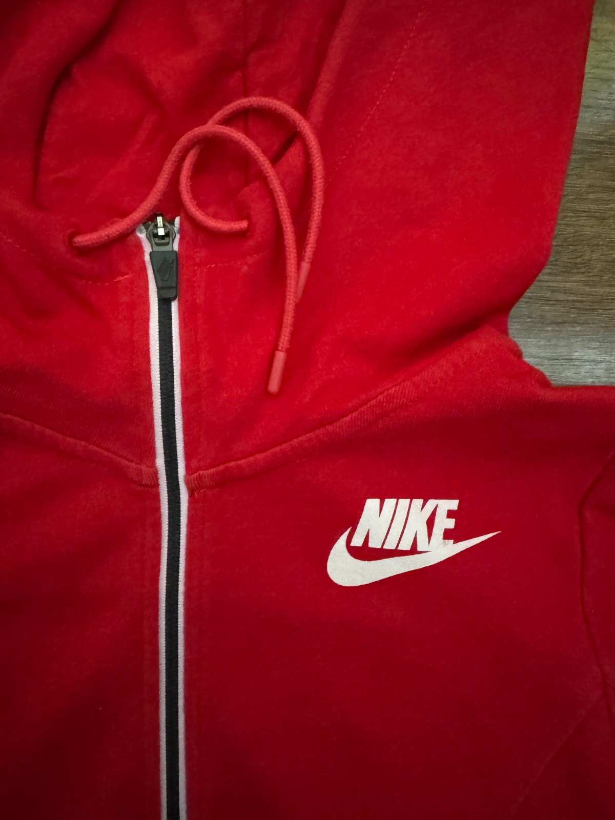 Ponúkam peknú červenú mikinu s kapucňou originál značky Nike. Veľkosť je uvedená S ale sadne aj na XS, no prikladám aj rozmery. Bola nosená, má bežné známky nosenia, naďalej v peknom stave. Poštovné podľa taríf.