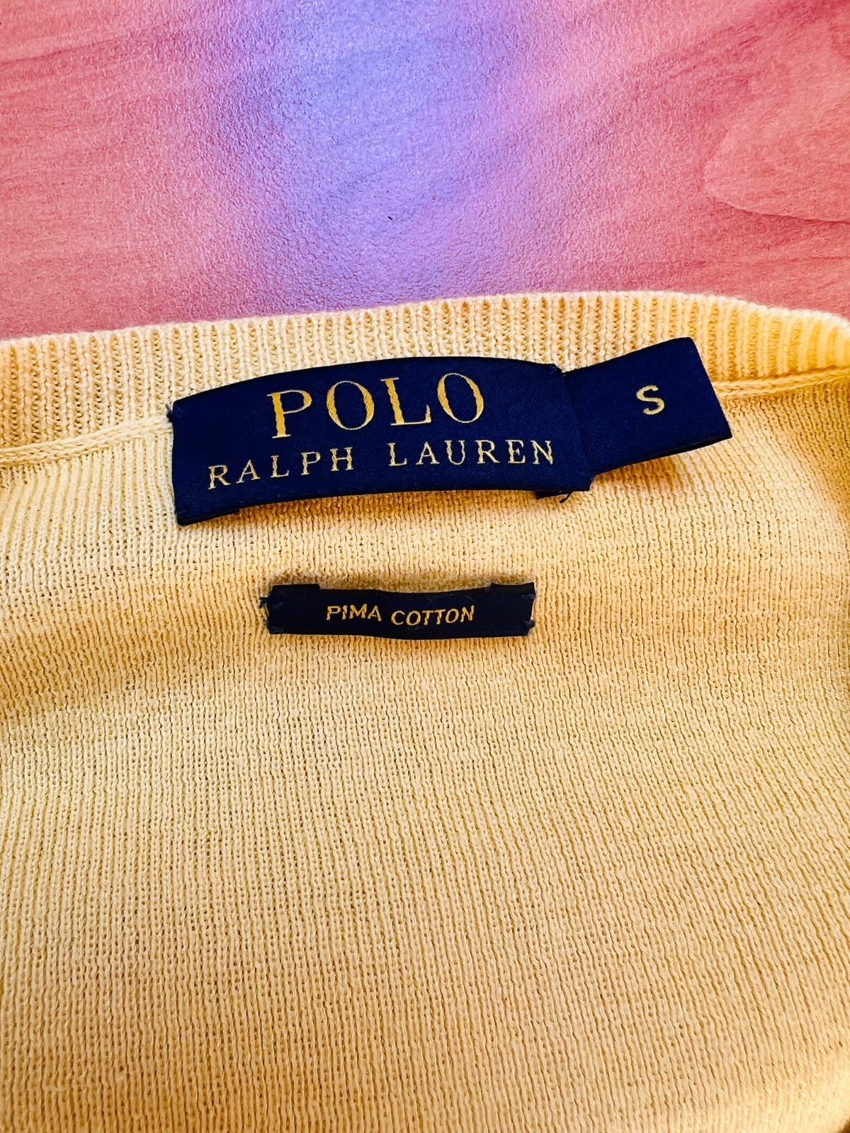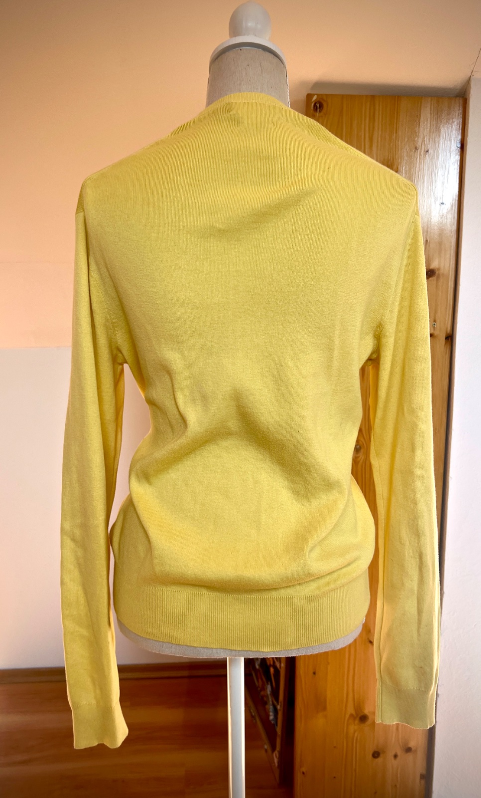 Pekný žltý pulóver z príjemného materiálu. Jednoduchý, vpredu vyšité logo. Veľkosť je písaná S, ale sedí skôr na M alebo je to oversize.