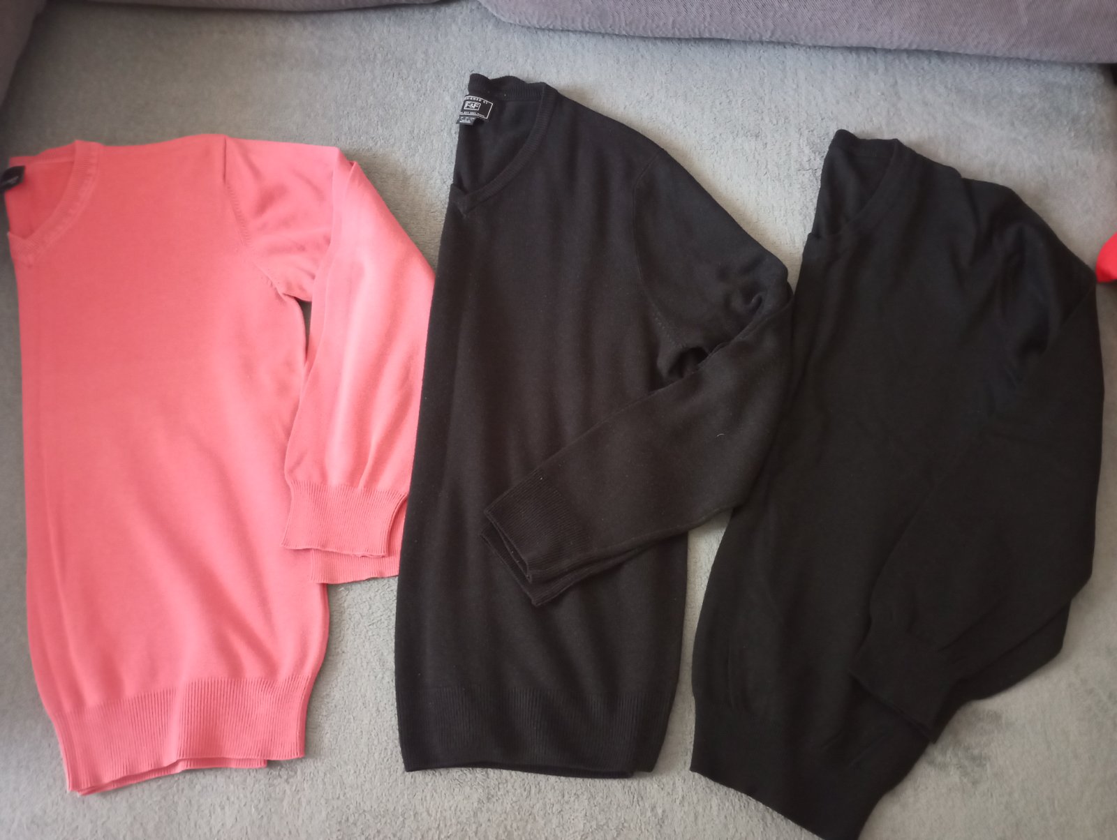V zachovalom stave, málo nosené. Béžový je veľ L . Pod pazuchami sú však rovnako široké, len pri patente je užší. Cena spolu je 12 €. Jednotlivo 6€ za kus.