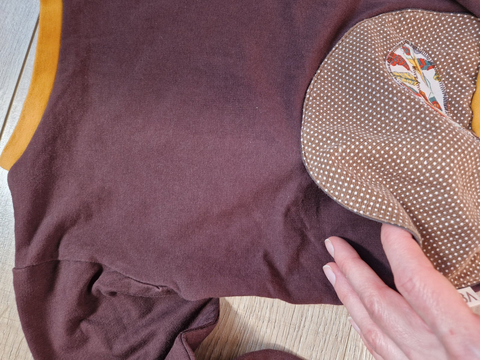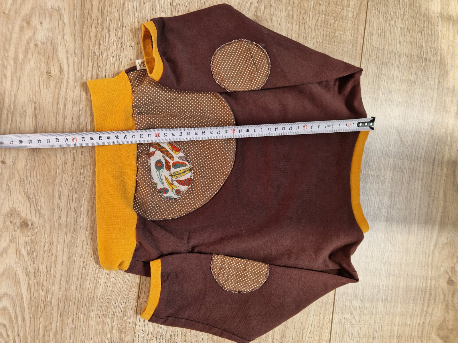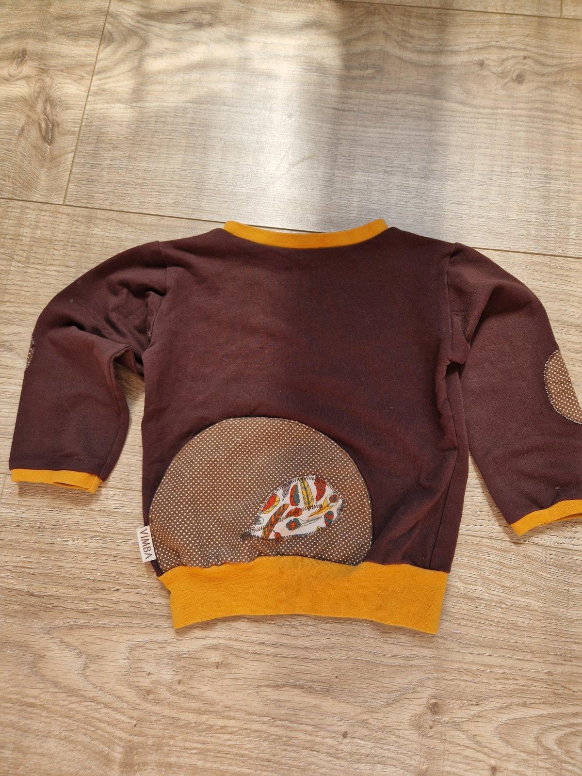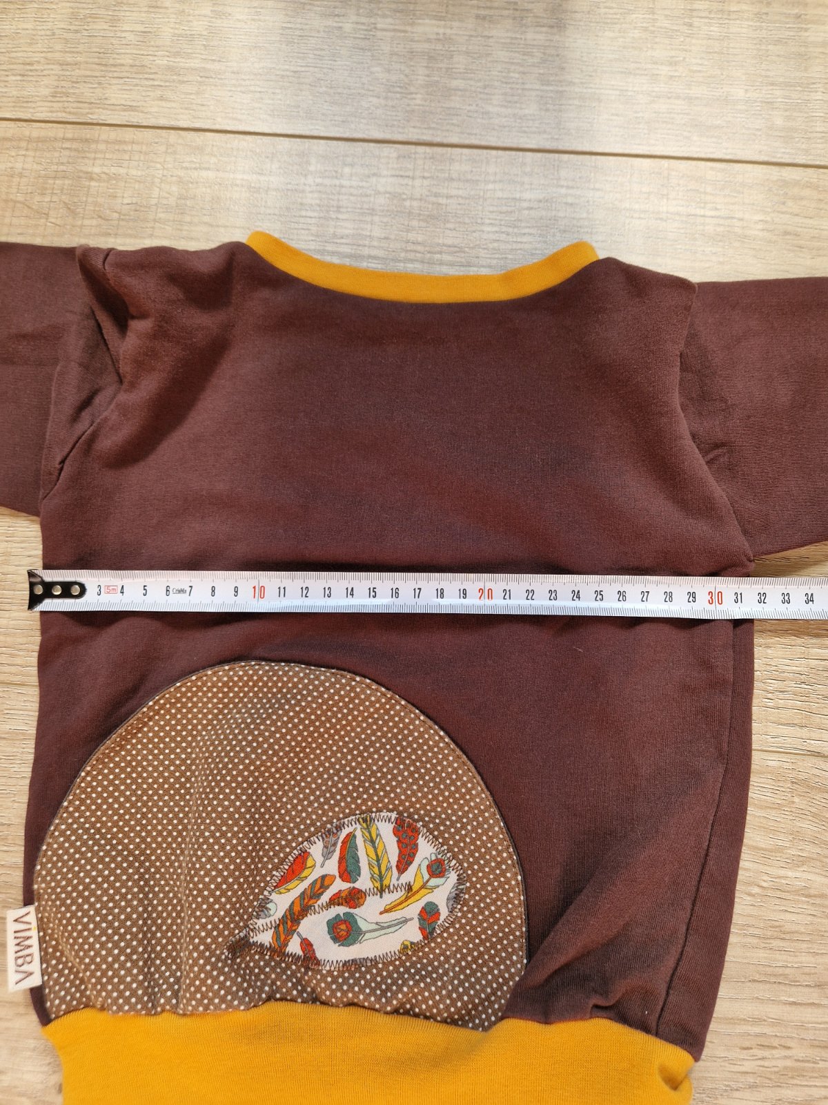 Predám krásnu štýlovú mikinu ručne šitú, asi 2x oblečenú. Vpredu vrecko. Nemá štítok ale ponosíte od 80-86 do 92 určite. Riaďte sa podľa rozmerov na foto.