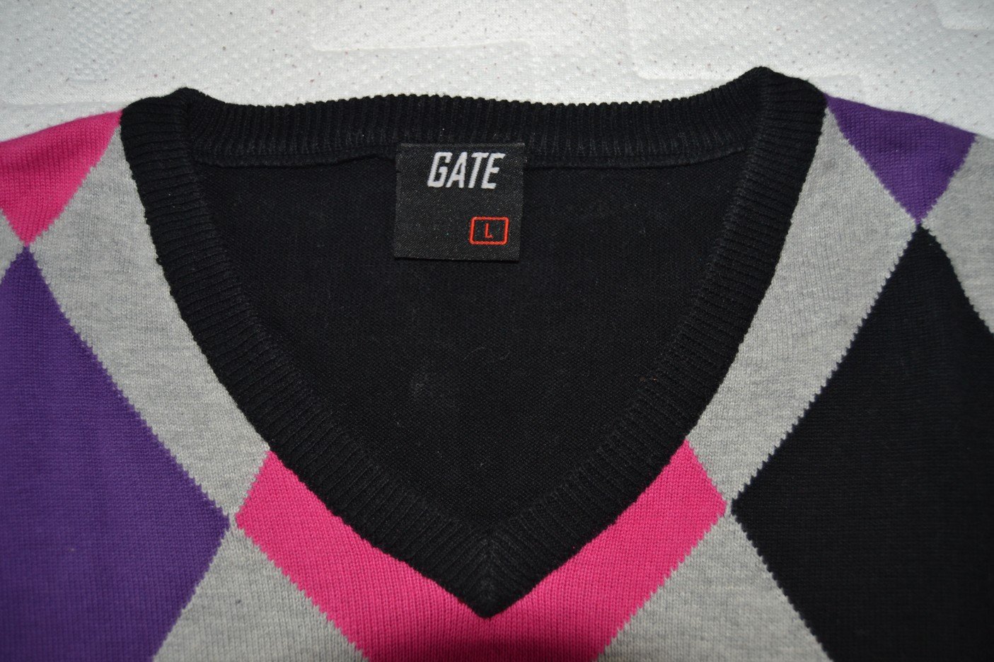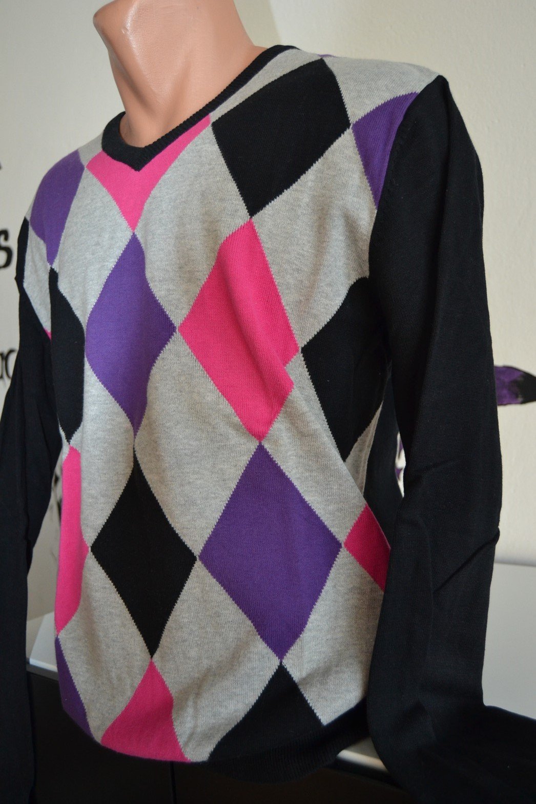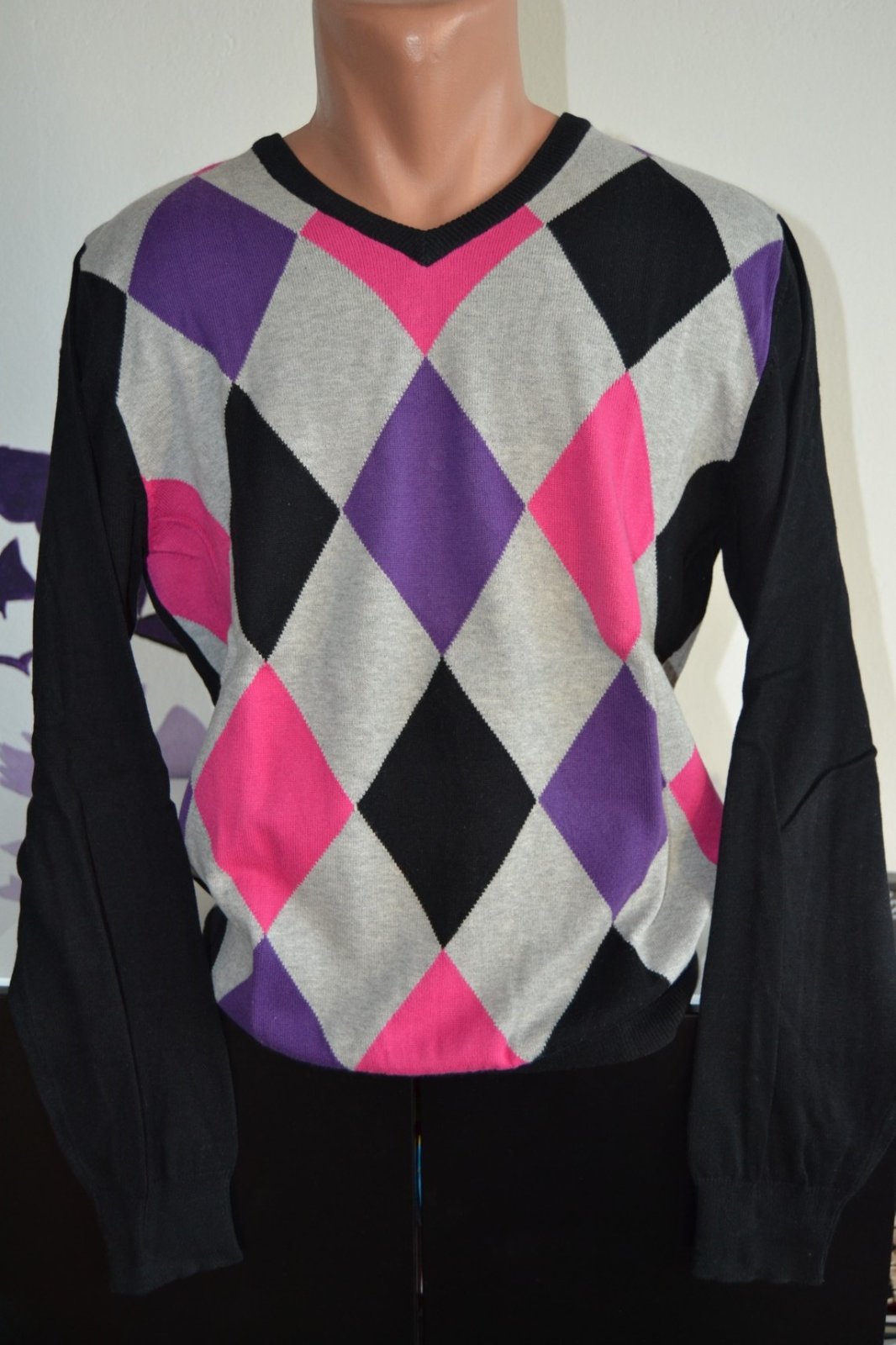 Elegantný pánsky sveter s károvým vzorom, veľkosť L. Rozmery: obvod 52x2 cm, dĺžka 66 cm, rukávy 67 cm. TOP STAV!!