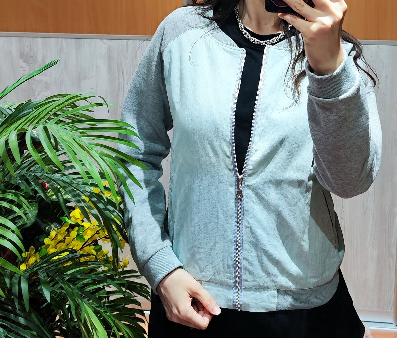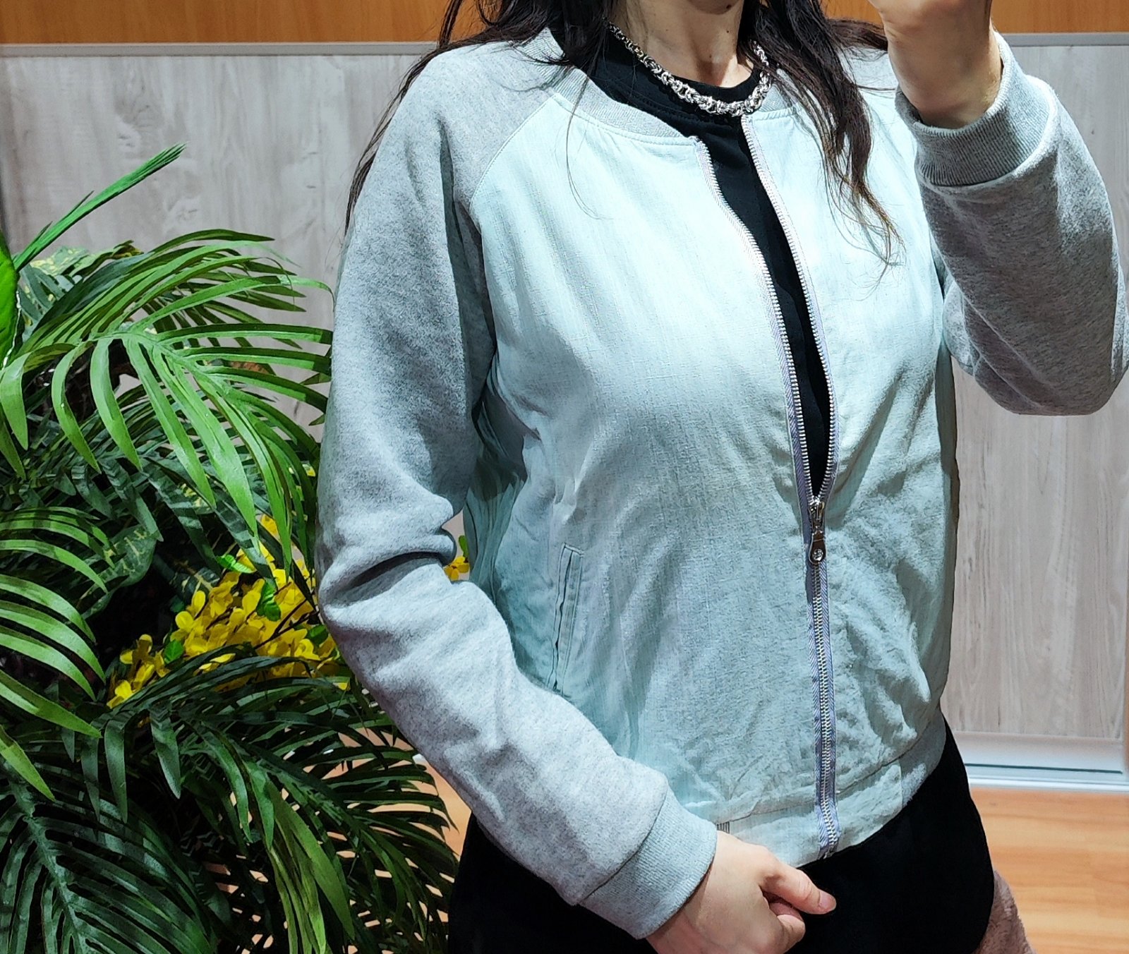Veľkosť S, je na zips, rukávy v šedej farbe.