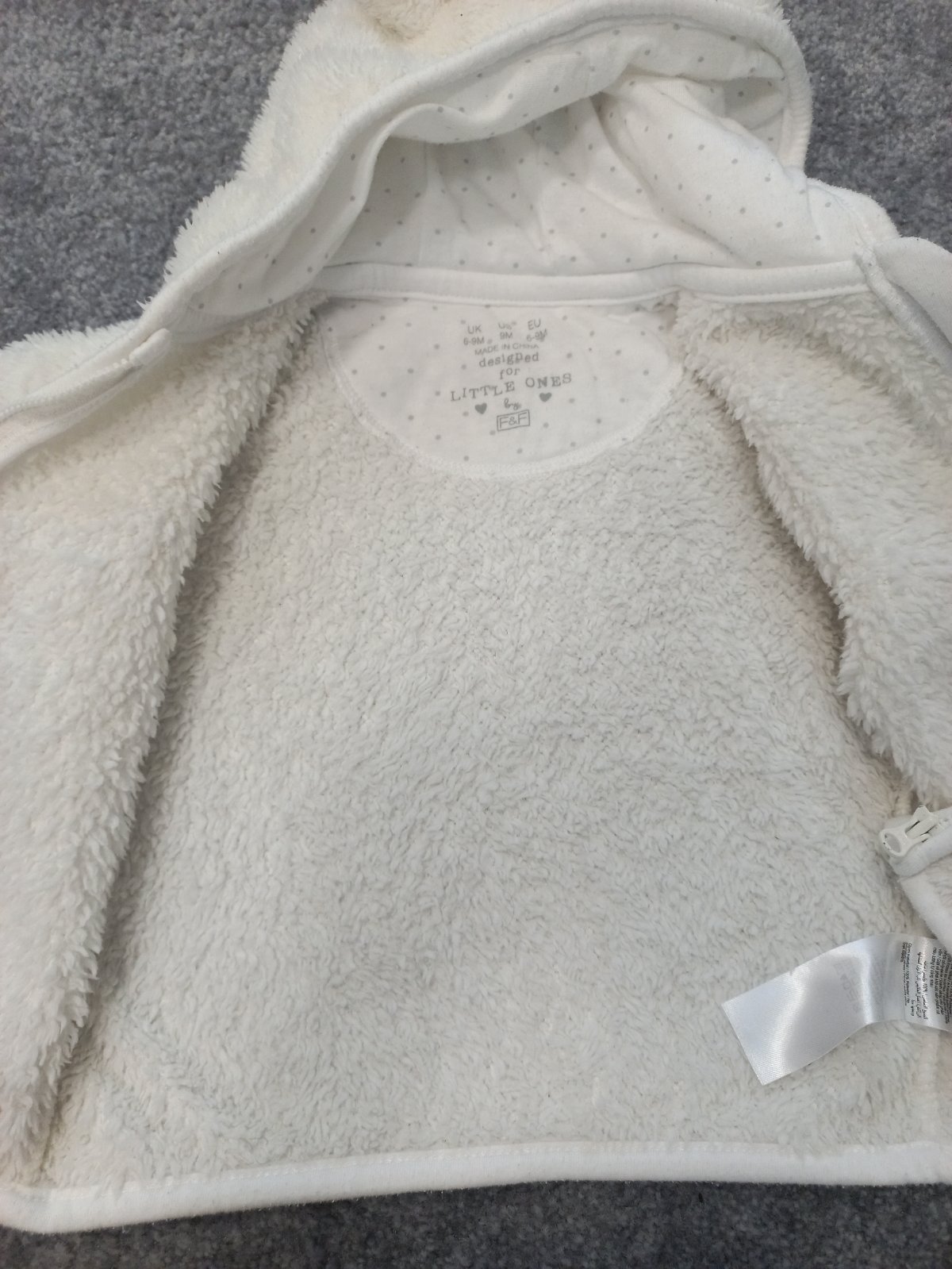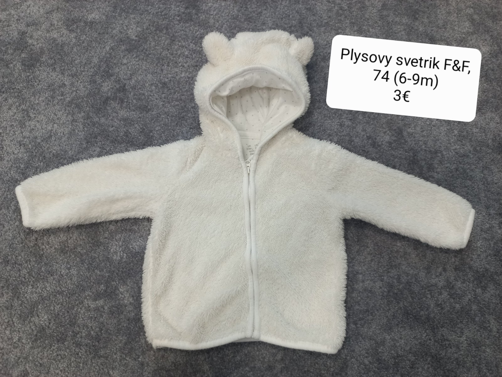 Biela plysova, nepodsita mikinka s uskami, F&F, 74 (6-9m), Bezchybny stav.