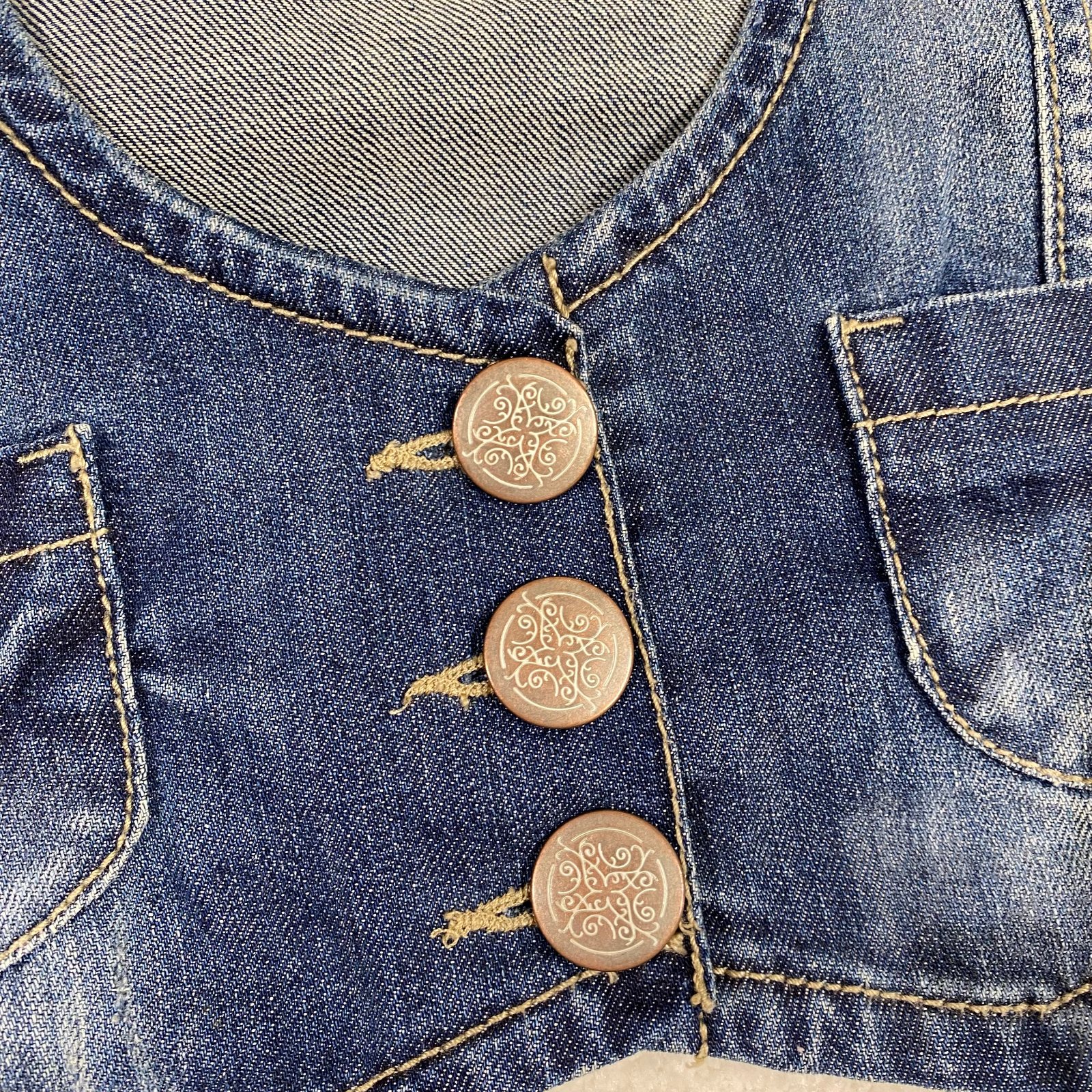 Pekná prešívaná vestička s vreckami, zapínanie na 3 veľké gombíky. Dĺžka je 32cm zadná časť a 40cm predná časť, šírka je 33cm.