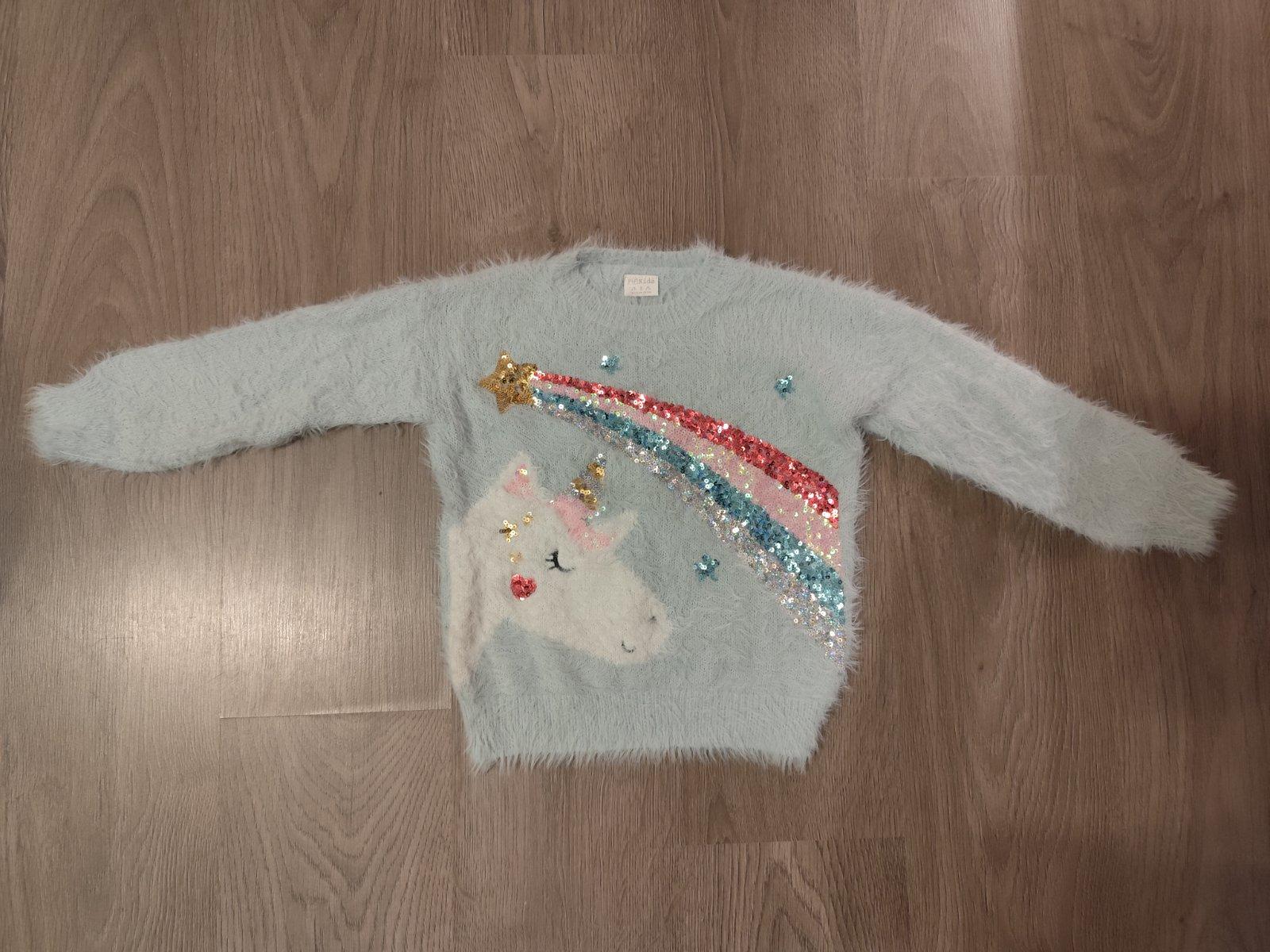 Svetrík F&F, nosený, zachovalý. Veľkosť 122, ale pridávam aj rozmery: dĺžka rukávu od krku 50 cm, dĺžka 37 cm, šírka od pazuchami 35 cm - viď foto. Cena 3 eurá.