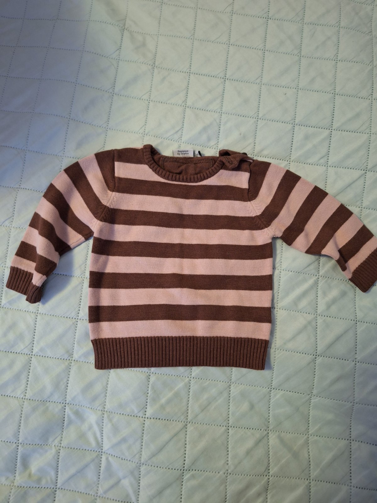 2) hnedoruzovy svetrík zn. Bamboobaby. Rozmer skôr do 1 roka. 2 eur
