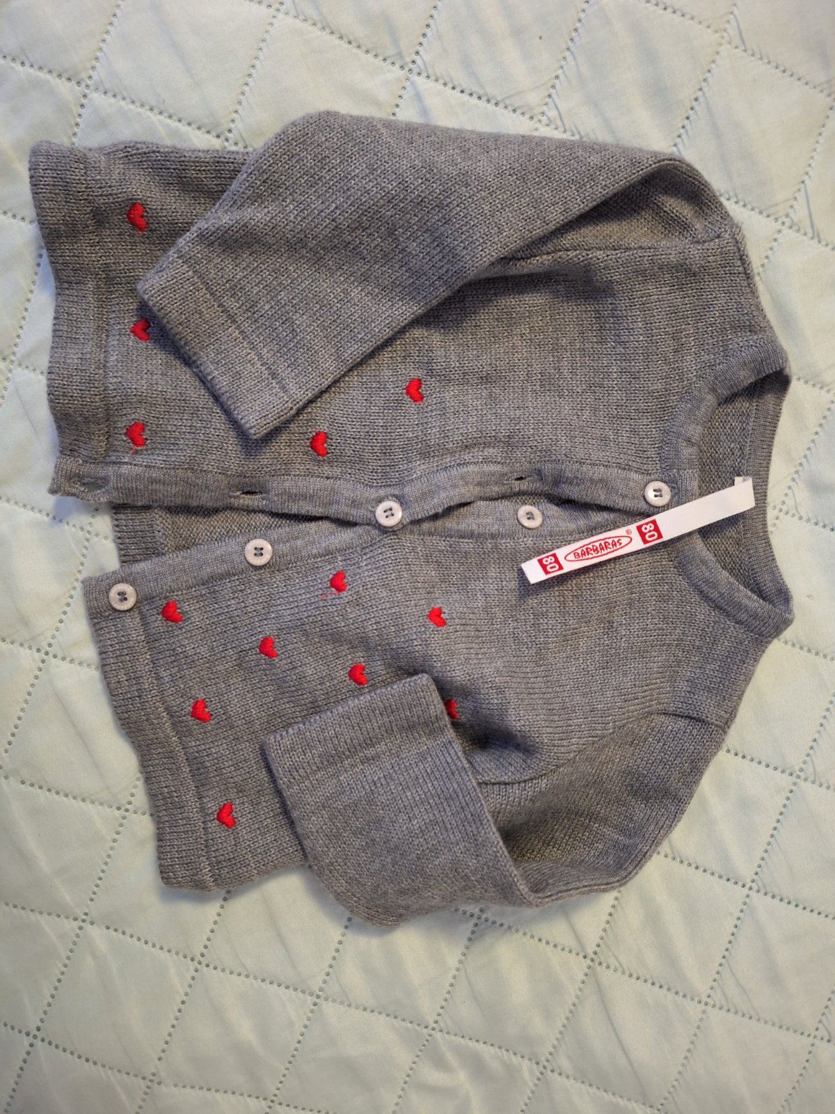 1) šedý svetrík zn. Barbaras. Rozmer 80 - 3 eur
