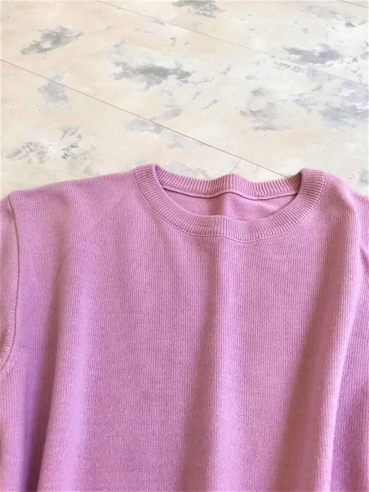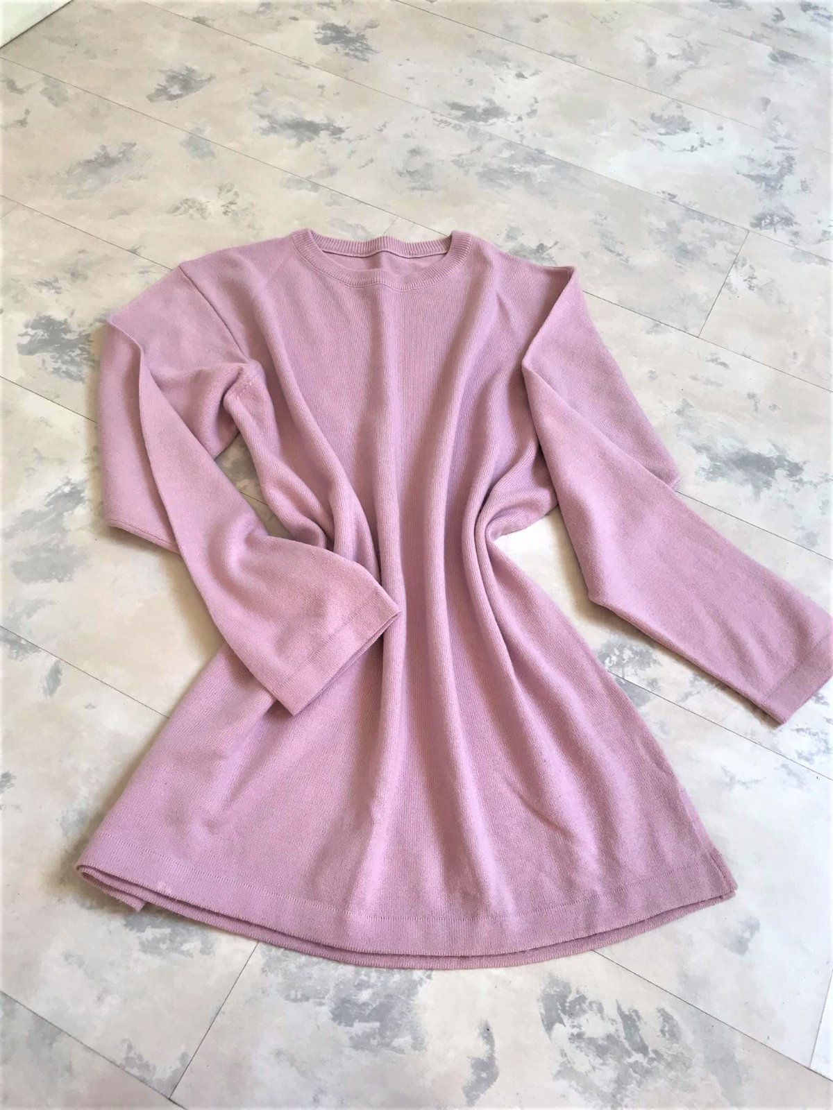 jednoduchý klasický pulovrik s rozporkami, dlhší, 100% acryl,má jemnunké žmolky - sem -tam,ako každý akrylový svetrík,ale nie je ich veľmi vidno,zachovalý,púdrovoružová farba,bez streču,volný strih,velkosť 40 - 42,super zakryje nedostatky