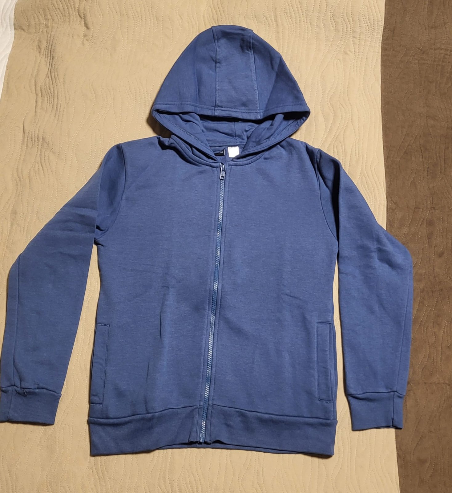 pre 10-12 ročných, teplejšia mikina, prechodná, zachovalá, dĺžka je 55cm, rukáv je 60cm, kapucňa, 2 vačky
